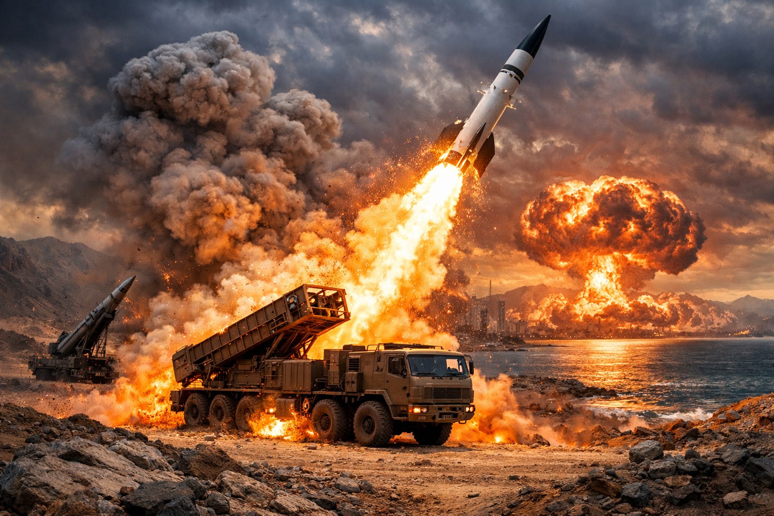 Именно это место Иран выбрал для демонстрации силы в ответ на скоординированные действия Израиля и США. На опубликованных позже кадрах отчетливо видно, как в ночное небо уходят зенитные ракеты американского комплекса MIM-104 Patriot. Они должны были поразить иранские баллистические ракеты, но промахнулись. Три пуска - три неудачи.