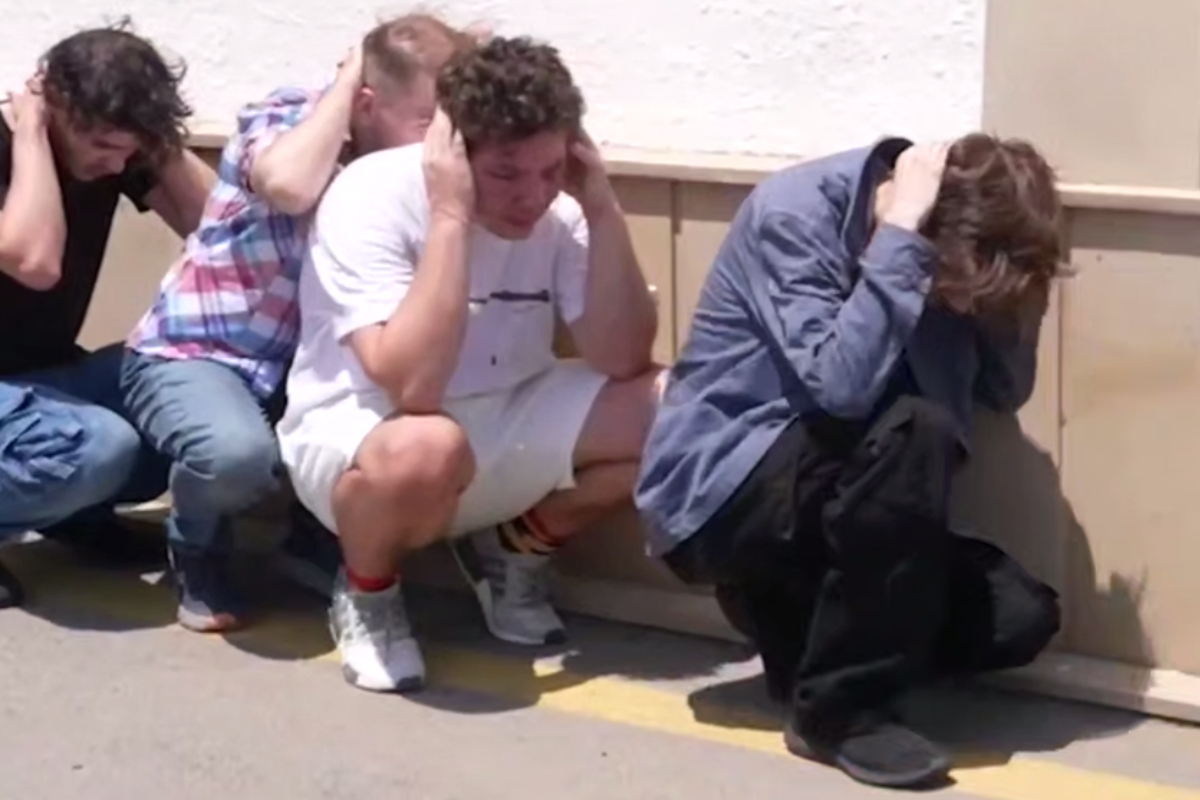 Эту информацию им, видимо, вбивали в головы в буквальном смысле слова, судя по появившимся в Сети фотокадрам, на которых задержанные россияне предстают со следами явного избиения на лицах. Их также зачем-то заставили заложить руки за головы и ходить по кругу гуськом («паровозиком»), недоумевает журналист.