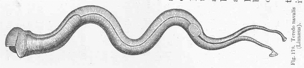 Несмотря на название, шашень — не червь, а моллюск. Дальний родственник мидий и гребешков, но такой, который, видимо, проиграл в генетической лотерее. У него даже раковины почти нет — только две крошечные створки у переднего конца тела, которые он использует как бур. Да-да, этот «беззащитный слизняк» дырявит древесину, как дрель — только без шума, без искр и с удовольствием.