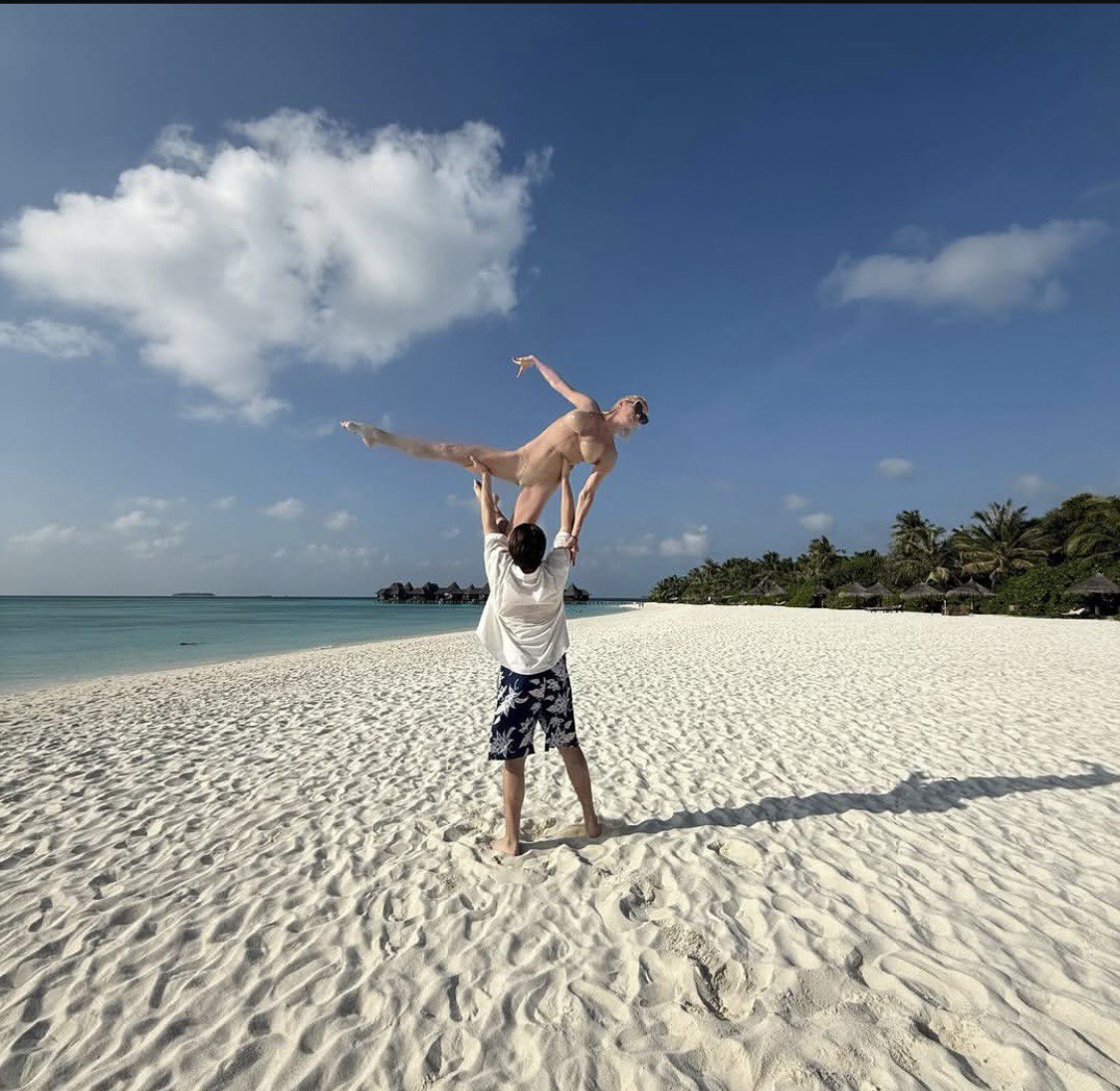 Помимо дефиле топлес Анастасия демонстрировала на своей мальдивской даче тот же знаменитый шпагат, а помогал ей в этом Марчело. Мужчина явно занимал все мысли балерины, так как, по ее словам, он весьма галантный и внимательный кавалер, который не давал ей скучать и все время был рядом. К тому же балерина не скрывала, что тоже заботилась о своем коллеге, когда он обгорел на солнце.