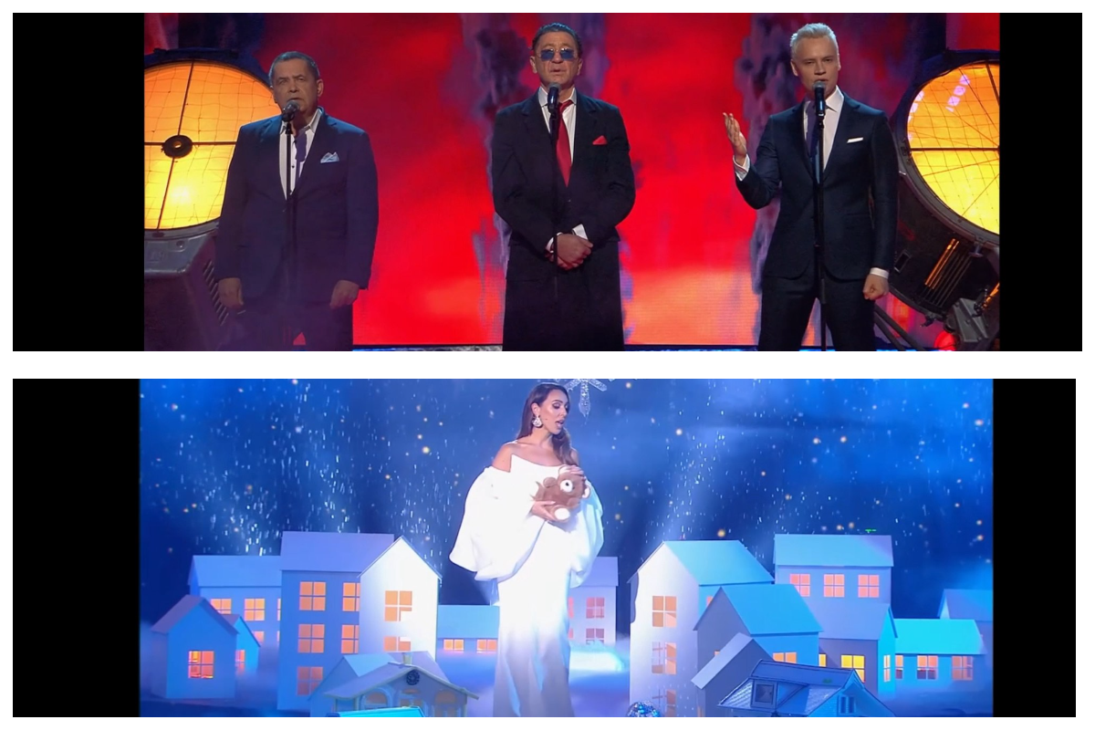 Первые минуты трансляции ещё не вызывали тревоги: на сцене появились Лев Лещенко и Юрий Антонов и вроде бы всё привычно. Но затем экран заполнили лица, давно исчезнувшие из публичного пространства: Иосиф Кобзон, Людмила Гурченко, Александр Градский, Вячеслав Добрынин. Кадры были настолько качественно отреставрированы, что даже пожилые зрители сомневались: не ошиблись ли они с датой смерти любимых артистов?