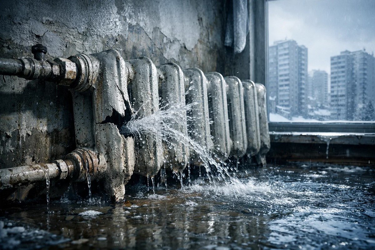В жилых домах массово лопались трубы, поскольку не были рассчитаны на температуры ниже минус 40 градусов. Вода, вырывавшаяся наружу, моментально превращалась в лёд, покрывая дворы и дороги скользкой коркой. Над местами аварий поднимались клубы пара, создавая ощущение настоящего ледяного Армагеддона. Зрелище, скажем так, не для слабонервных.