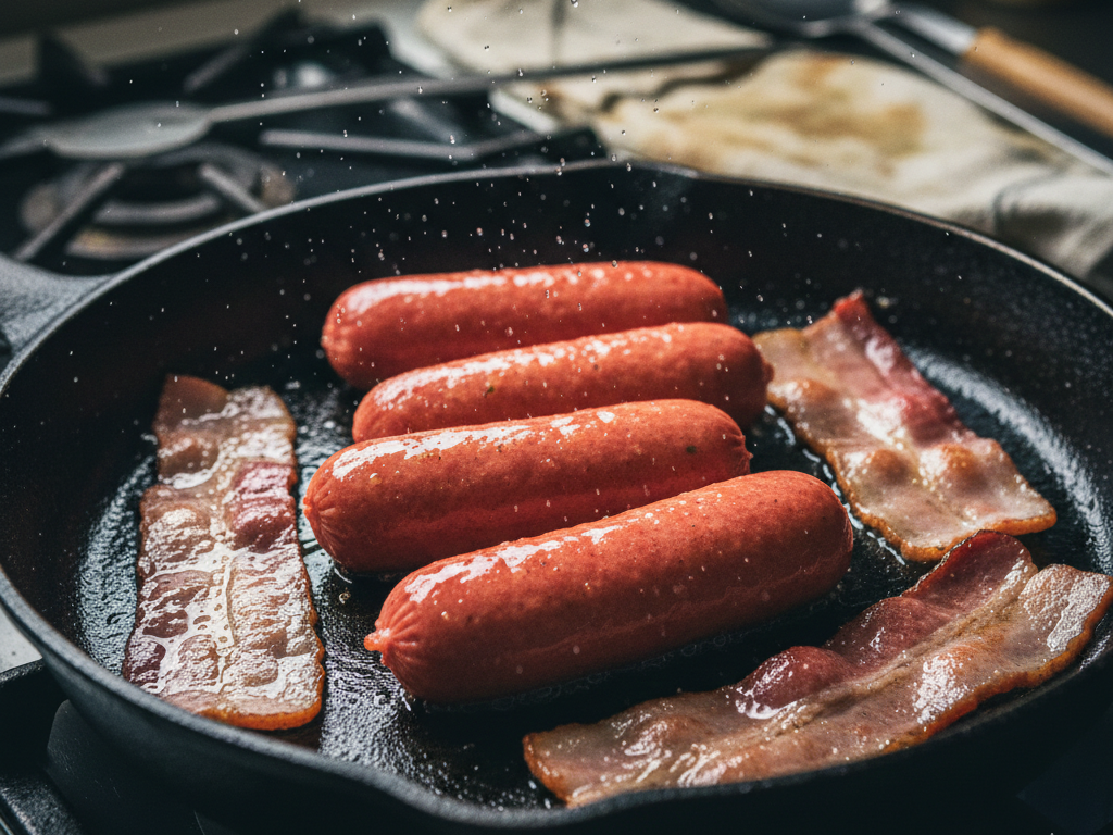 Андрей Нефедов, ведущий научный сотрудник и торакальный хирург ФГБУ «СПб НИИФ», предупреждает: термическая обработка (жарка бекона или сосисок) только усугубляет ситуацию, активируя мутагенные свойства добавок. Единственный безопасный выход — полная замена магазинных полуфабрикатов на домашнее мясо, например, отварную куриную грудку.