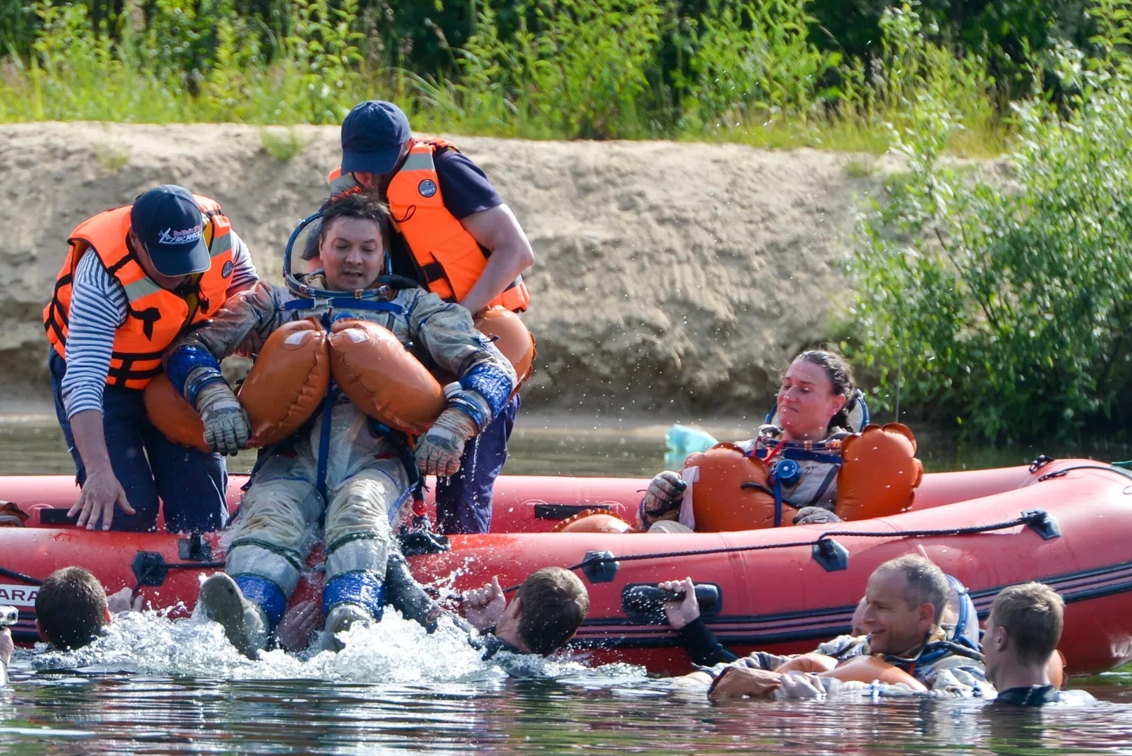 Командир и бортмеханик ракеты смогли самостоятельно покинуть спасательный аппарат и освободиться от скафандров. После они переоделись в теплозащитные костюмы и разожгли костер. В качестве топлива выступил кусок теплозащиты, оторвавшийся от капсулы во время падения.
