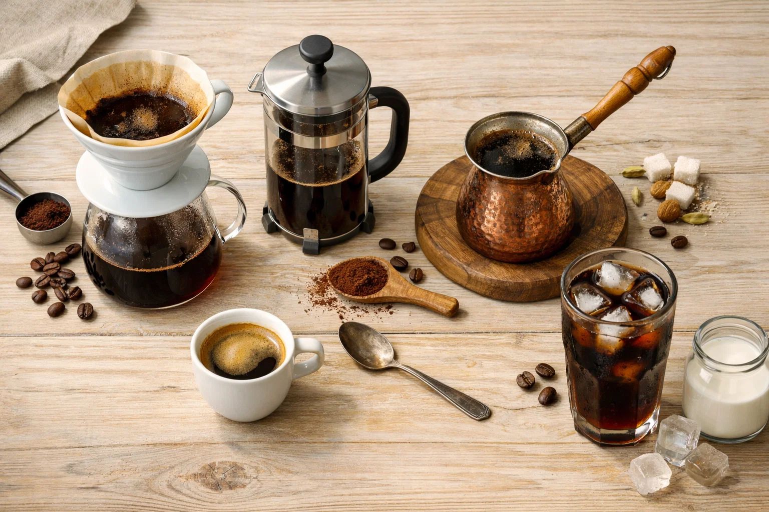Казалось бы — выучил пропорцию, и живи спокойно. Но есть нюанс: правильное соотношение кофе и воды меняется в зависимости от метода заваривания. Каждый способ — это разная логика, разное давление и разное время контакта.