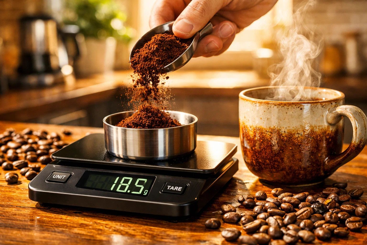 Или ещё проще — умножайте объём воды на 0,055–0,06. Это совпадает с международными стандартами приготовления кофе и является точкой отсчёта для профессиональных бариста по всему миру.