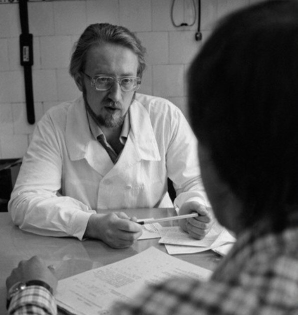 Вадим Покровский осматривает первого ВИЧ-инфицированного пациента