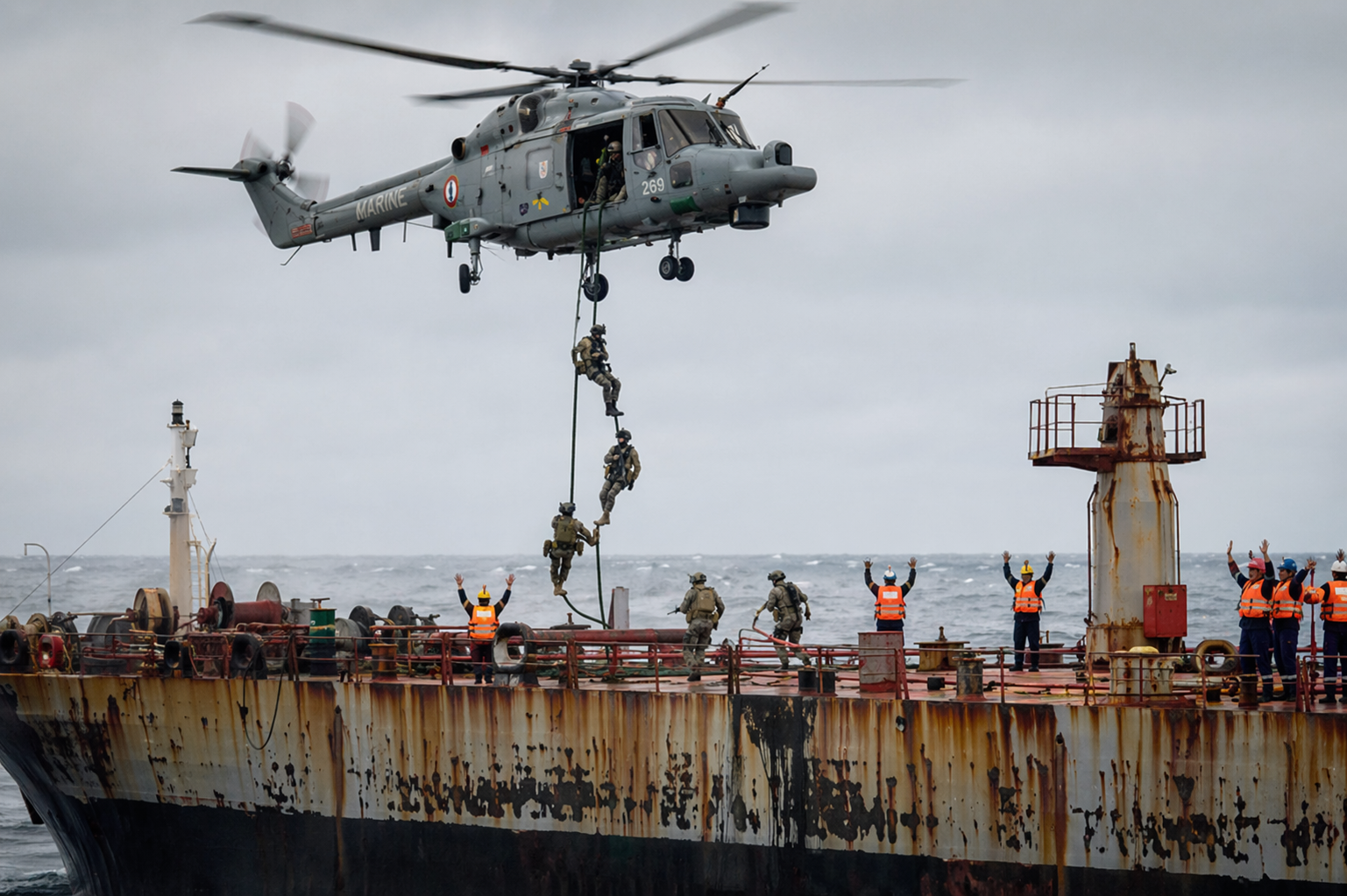 - Повышенная ответственность при угрозе военным. Отдельная, гораздо более тяжкая статья вводится для случаев, когда манёвры или действия экипажа проверяемого судна создают реальный риск для жизни французских военнослужащих, проводящих досмотр. Такое правонарушение автоматически переводит дело в категорию особо тяжких: срок заключения вырастает до семи лет, а штраф — до 700 000 евро.