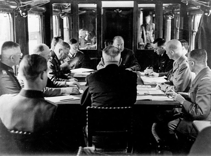 Примечательно, что спустя 22 года в том же вагончике состоялось второе Компьенское перемирие. Только теперь уже Германия ставила условия свои оппонентам. Специально для этого случая тот же железнодорожный вагон маршала Фоша, в котором происходило подписание соглашения в 1918 году, был доставлен из музея к месту подписания в Компьенском лесу. Все это говорит о цене разного рода перемирий, которые никогда не представляют собой финальную точку, но всегда являются обещающим еще худшее продолжение троеточием.
