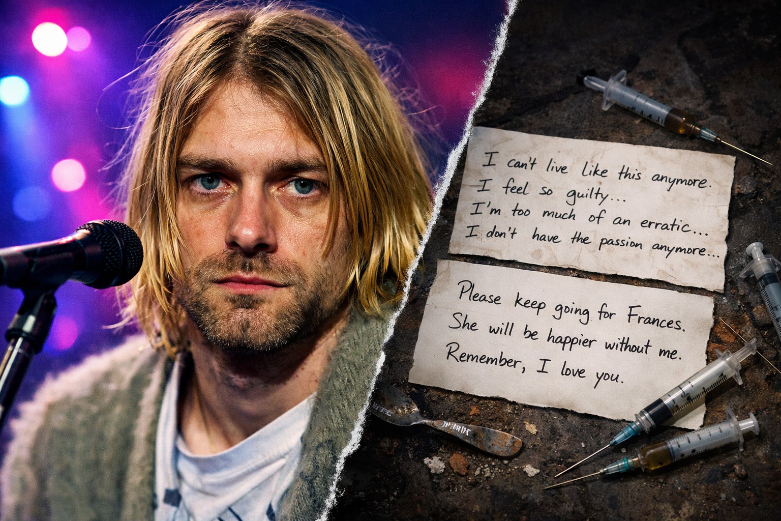 Знаменитая предсмертная записка Кобейна всегда вызывала споры. Основная часть текста написана его почерком — это факт. Там музыкант размышляет о разочаровании в музыкальной индустрии, о том, что устал от фанатов и хочет уйти из группы.
