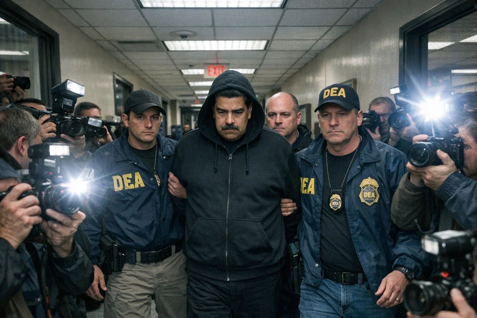 Мадуро и его жена Силия Флорес были вывезены из страны на борту военного самолёта, затем пересажены на вертолёт и доставлены прямо к зданию федерального суда Нью-Йорка. Американская прокуратура обвинила обоих в наркотерроризме, сговоре с целью ввоза кокаина в США и незаконном хранении оружия. Совокупность статей — потенциально пожизненное заключение или даже смертная казнь.