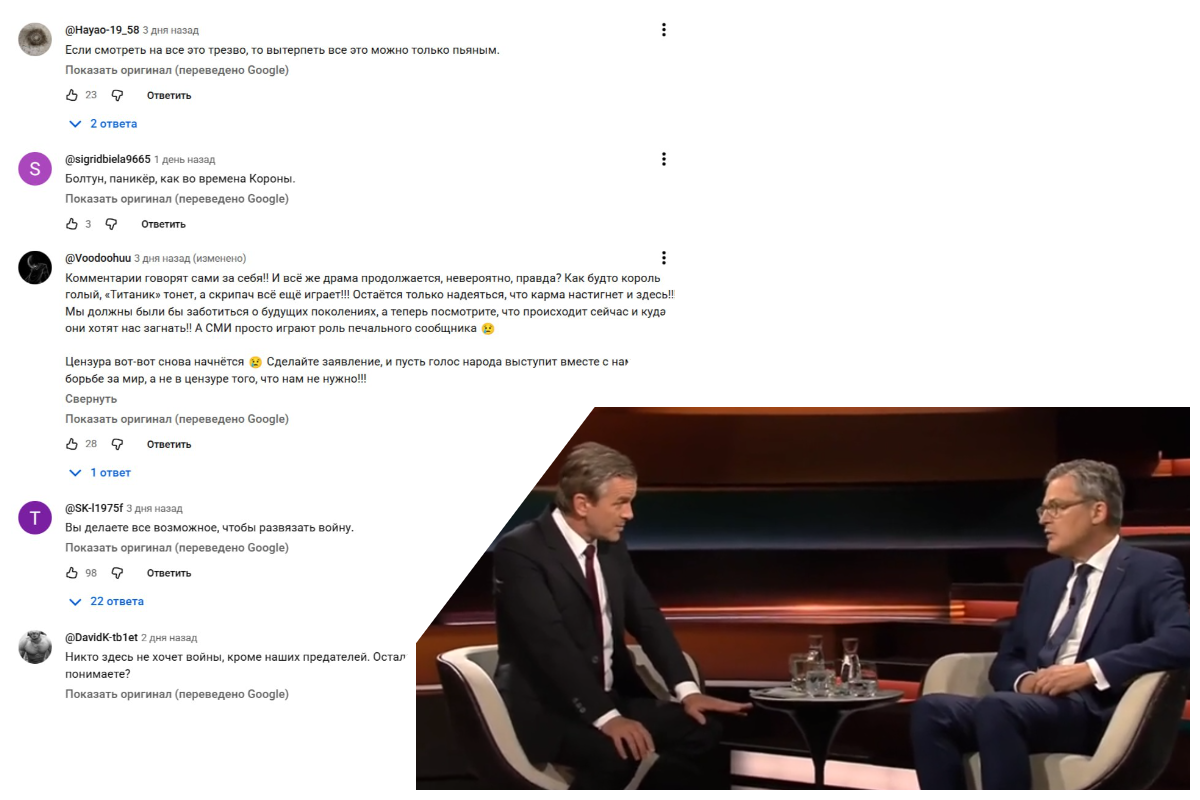 В условиях, когда официальные СМИ теряют доверие, а политики говорят всё громче и всё менее обоснованно, немецкое общество оказывается перед выбором: следовать за пропагандой или сохранять независимость мышления. Судя по комментариям, многие выбирают второе — даже если для этого приходится смотреть новости… с бокалом вина в руке.