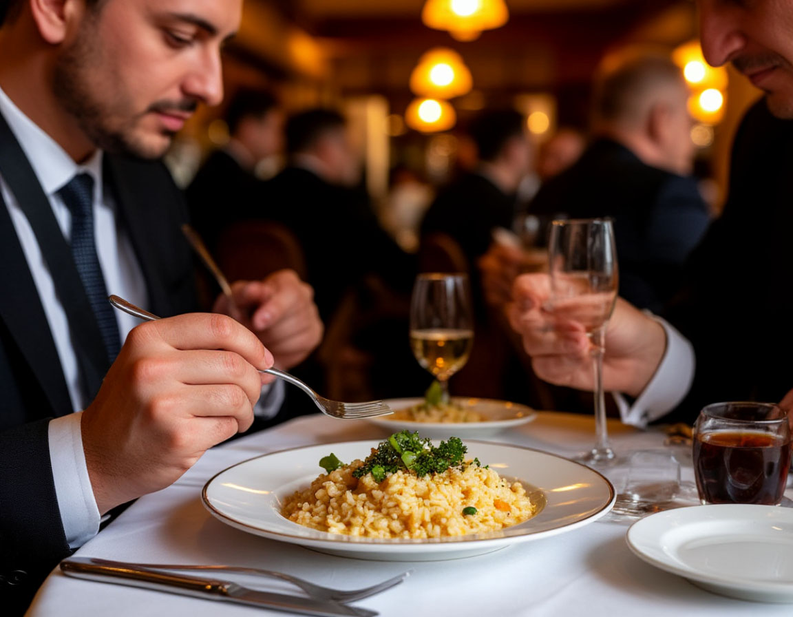 Строгие костюмы и необходимость делать вид, что ты знаешь, чем ризотто отличается от плова. Они приходят решать вопросы, а не вкусовые задачи.