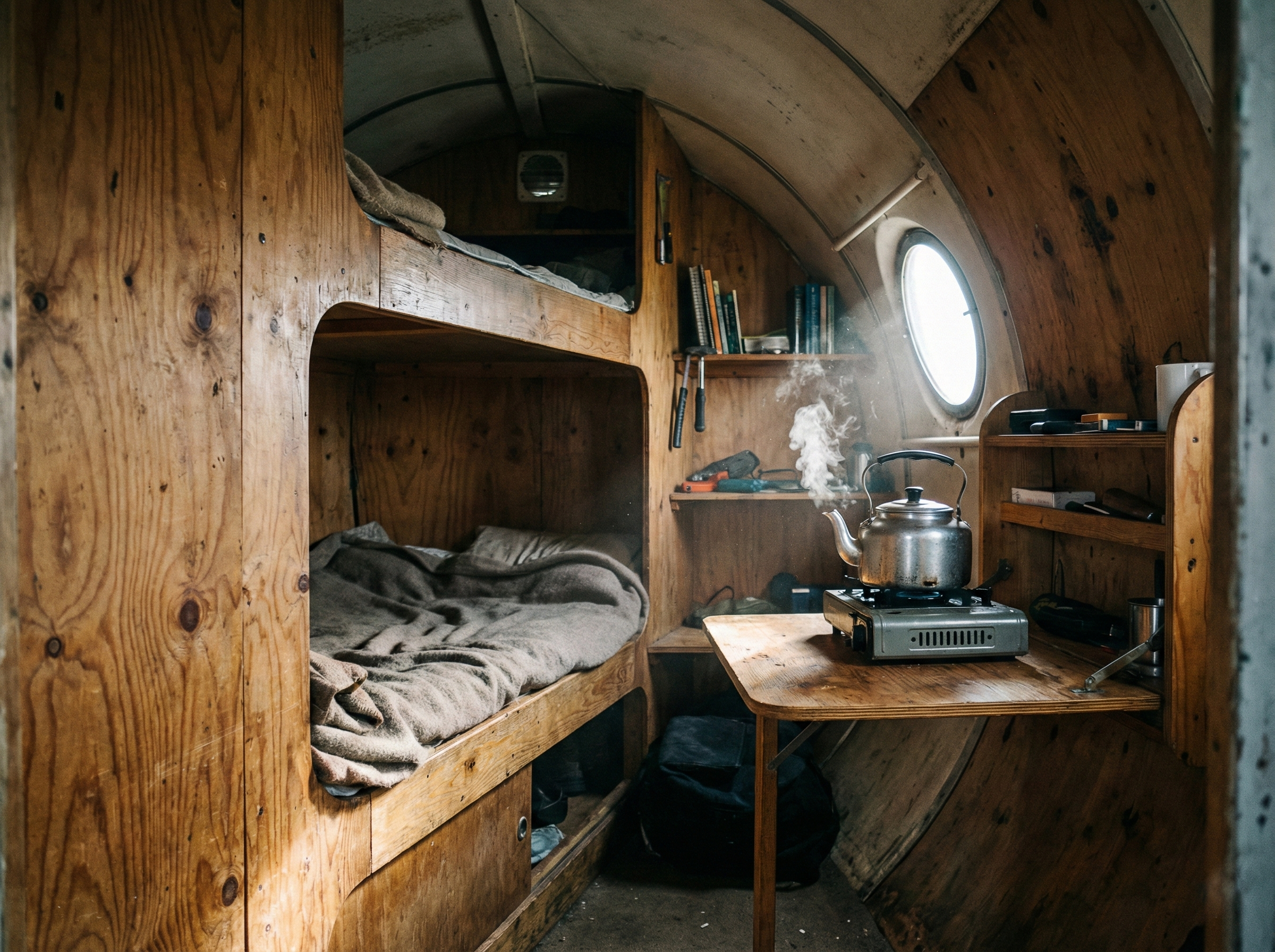 Внутри этой странной капсулы скрывался слоеный пирог, который и сегодня даст фору многим каркасникам. Стены ЦУБа (цельнометаллического унифицированного блока) не имели «мостиков холода» — углов просто не существовало. Конструкция работала по принципу термоса: внешняя стальная оболочка, толстый слой утеплителя (пенополистирол или фенолформальдегидная пена — экологи морщатся, но полярники выживали) и внутренняя отделка из фанеры или ДСП. Полная заводская готовность означала, что модуль привозили на вертолете или санях, подключали к кабелю — и можно кипятить чайник.