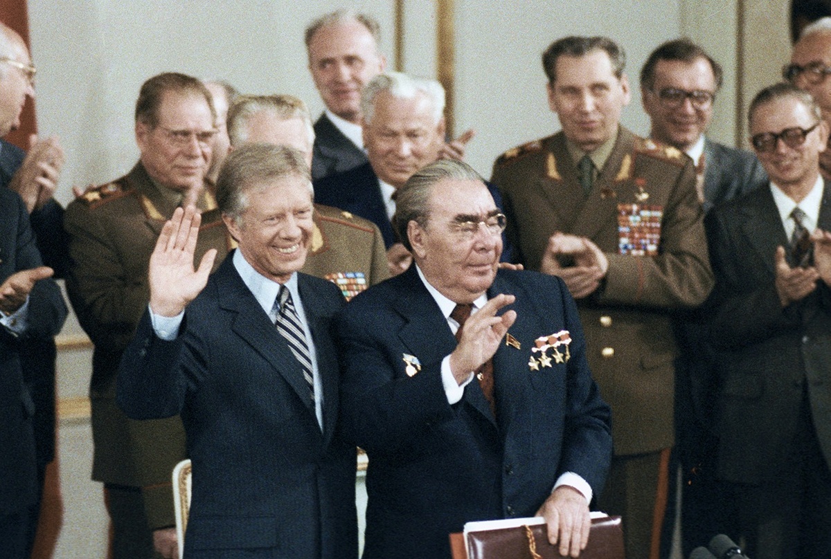 А в мировой истории были и такие кадры! Генсек СССР Брежнев и президент США Картер перед подписанием договора ОСВ-2, 1979 год