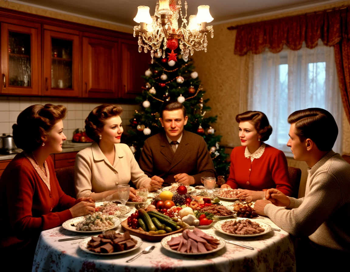 Советский новогодний стол — это не набор блюд, а архив времени, зашифрованный в картофеле, майонезе и запахе мандаринов. За каждым салатом — не хаос, а организованная трудность: в эпоху социальной стабильности, предсказуемости и уверенности в завтрашнем дне — продуктовый дефицит оставался частью повседневной реальности. Стол не собирался легко. Его доставали, берегли, планировали, потому что наличие еды на 31 декабря было не само собой разумеющимся, а результатом усилий, связей и веры. Это не ностальгия по «лучшим временам». Это попытка понять, как в условиях гарантированной стабильности и одновременно ощутимого дефицита рождалась особая форма щедрости — тихая, бережливая, глубоко человечная.