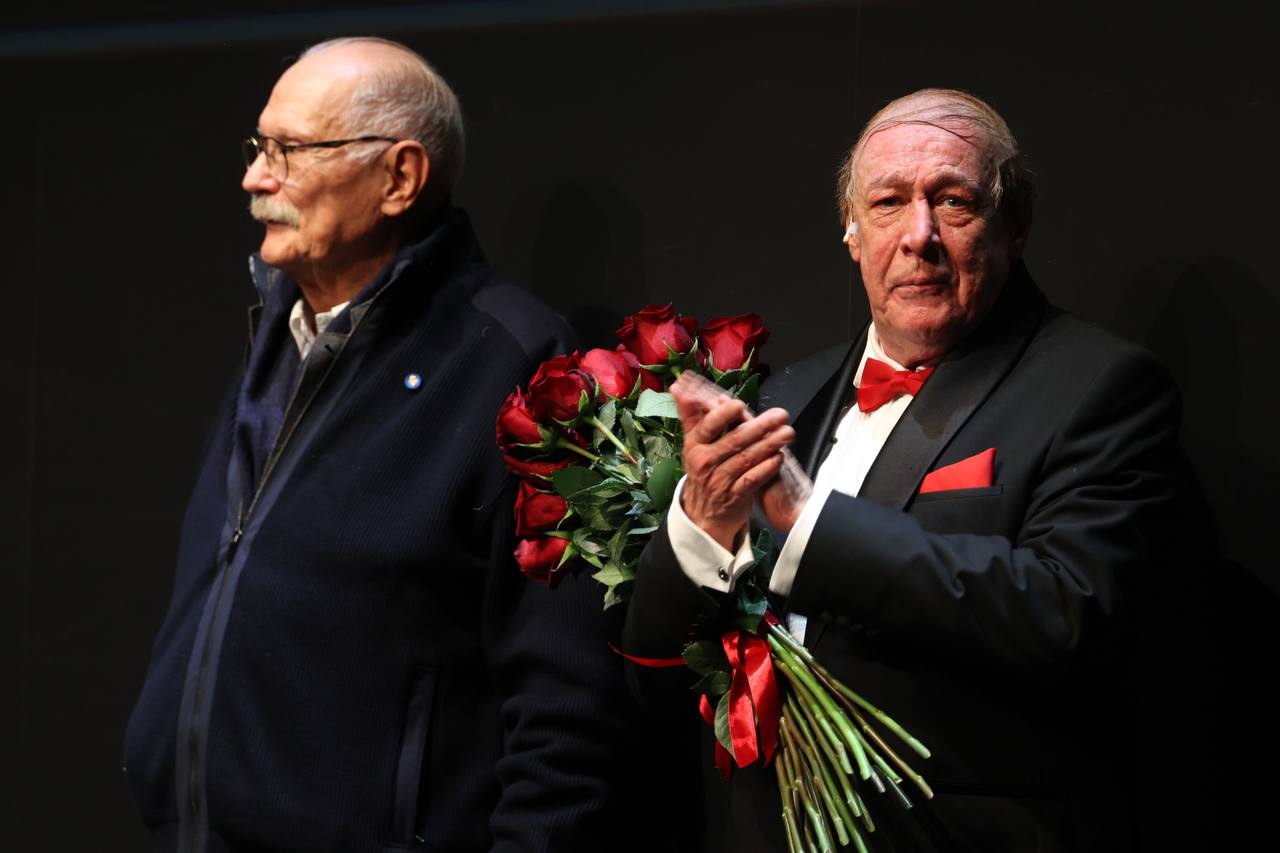 Финальные поклоны сопровождались шквалом аплодисментов. Крики «Браво!» не стихали несколько минут. Артистам подарили множество цветов. Вышедший на сцену Михалков тепло обнял Ефремова, словно подводя черту под вопросом о состоявшемся возвращении.