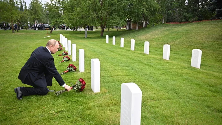 «Встреча года» (так прозвали ее в СМИ) проходила на объединенной военной базе Эльмендорф-Ричардсон. Вопреки ожиданиям, Путин и Трамп пообщались всего два часа сорок пять минут, а общая продолжительность визита Владимира Путина на Аляску составила около пяти часов - за это время он успел возложить цветы к могилам советских воинов на мемориальном кладбище "Форт Ричардсон" и встретиться с американским православным священнослужителем владыкой Алексием, которому он передал две иконы.