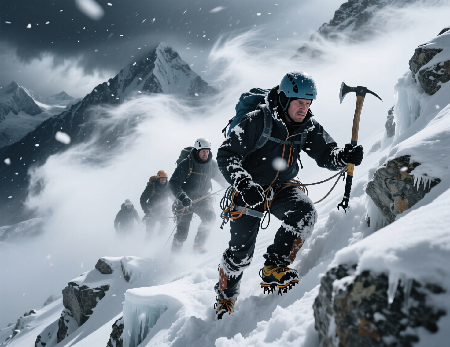 Но природа распорядилась иначе. Внезапно разразилась снежная буря невероятной силы. Видимость упала до нуля, ветер сбивал с ног, температура резко опустилась. Команда оказалась в смертельной опасности.