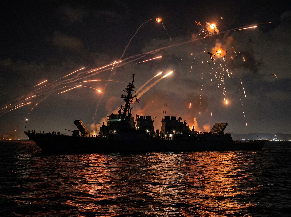 Ещё совсем недавно — в начале марта — USS Tripoli участвовал в трёхнедельных учениях Iron Fist у берегов Японии. А уже 13 марта его сфотографировали в одиночестве южнее Тайваня — корабль на всех парах шёл через Лусонский пролив. Военная машина не ждёт.