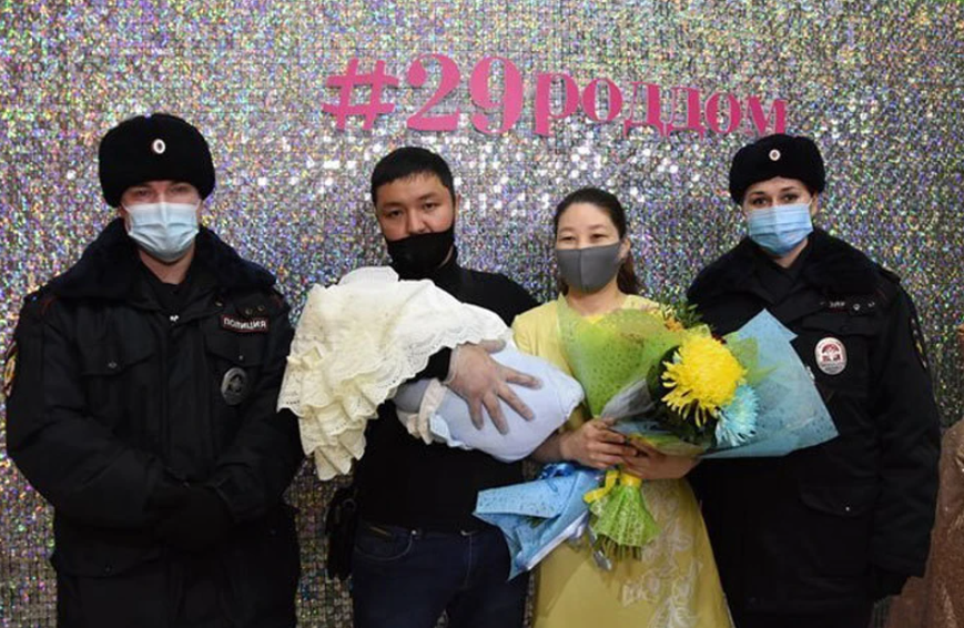 Сержант полиции Алеся Полякова и прапорщик полиции Алексей Орлов, помогавшие принять роды у гражданки Кыргызстана