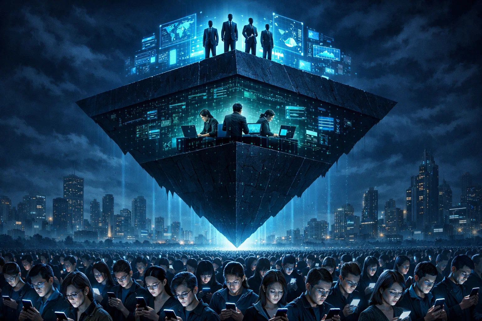 «Общество цифровых экосистем делится на ничтожное число владельцев этих экосистем, сокращающееся сообщество специалистов — и 95% населения, лишь пользующихся этим великолепием и по большому счету не нужных ему».