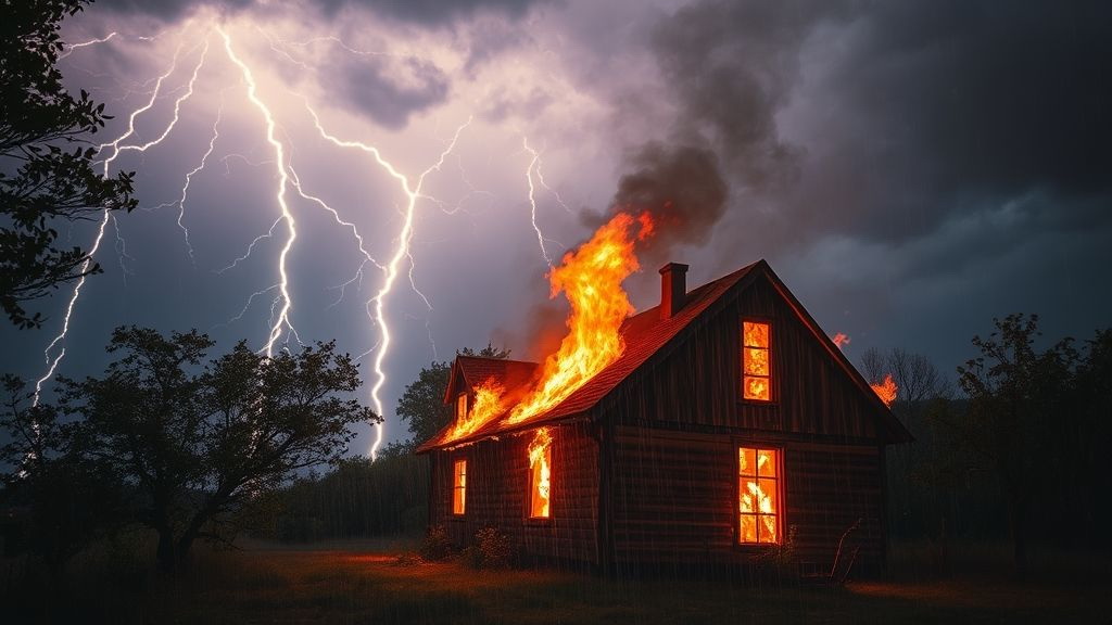 В доме. История с пожаром в Истре показывает, что и дом не всегда крепость. Если здание не оборудовано громоотводом и качественным заземлением, прямой удар молнии может прийтись в проводку, вызвав пожар или уничтожив всю бытовую технику.