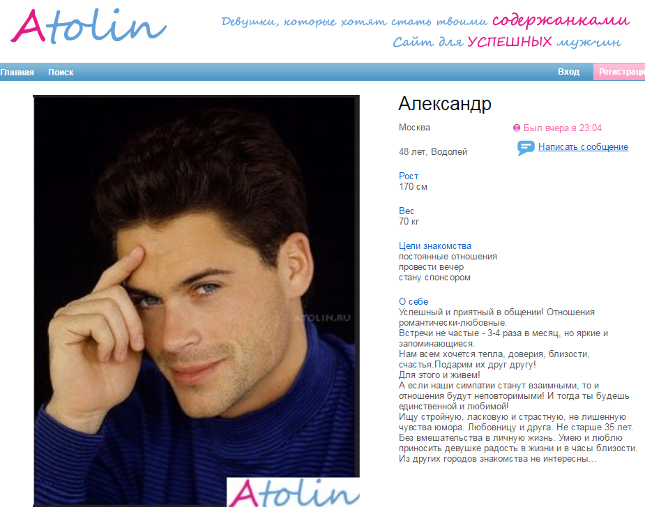 Типичный спонсор – успешный предприниматель 30-50 лет, часто разведенный. Ему некогда искать отношения традиционным способом, проще заплатить за готовый результат.