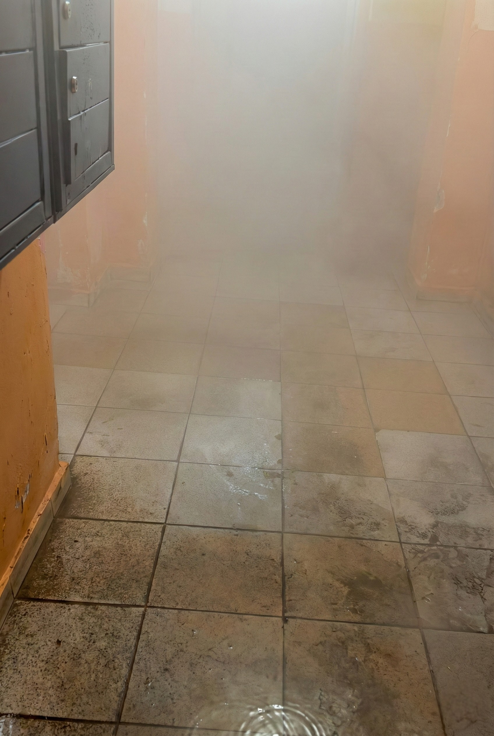 Состояние подъезда в одном из домов, в котором лопнули трубы на техническом этаже