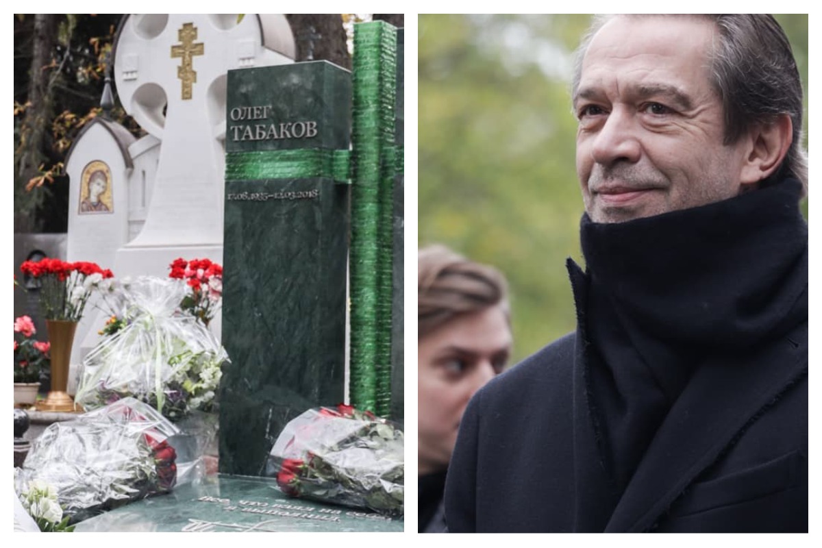 Машков на открытии памятника Табакову на Новодевичьем кладбище (2021 год)