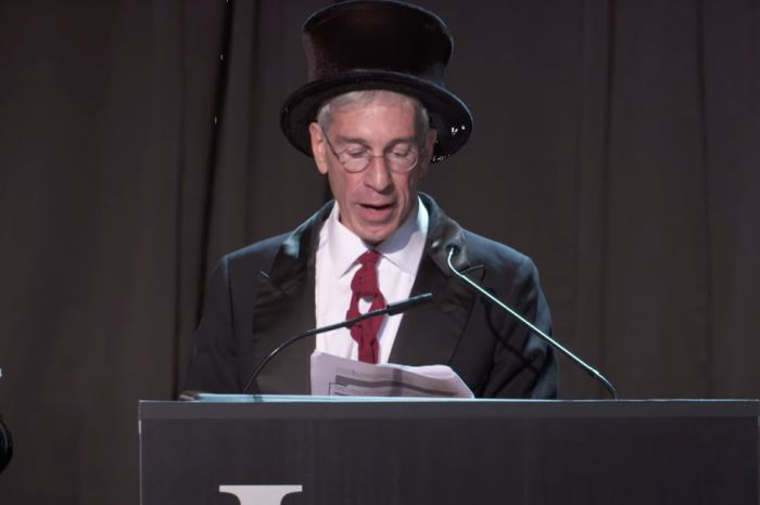 Ведущий церемонии награждения старается сохранять серьёзность при объявлении победителя, но это не всегда удаётся