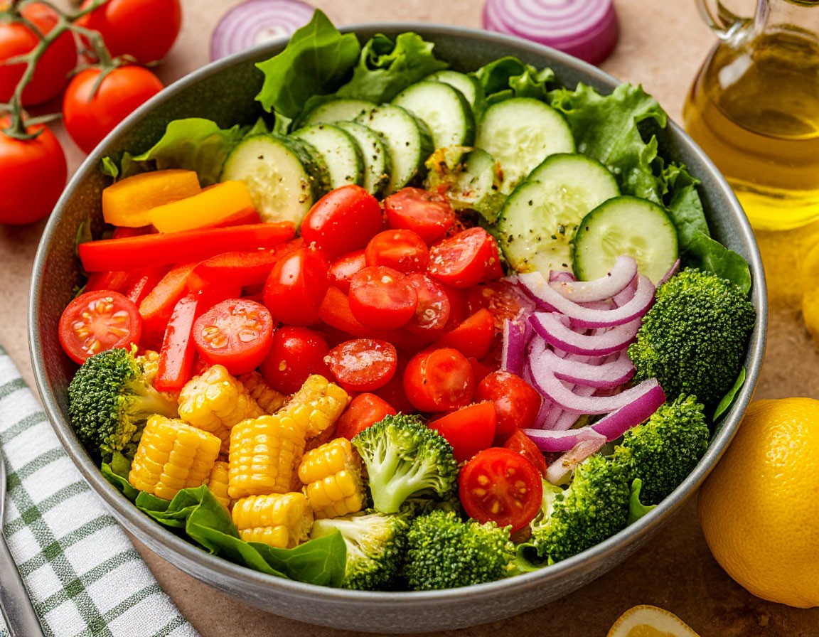 Лучше всего приготовить большую миску салата с утра, а затем понемногу добавлять его к каждому приёму пищи. Однако стоит помнить, что в салат не следует добавлять майонезы, жирные соусы или сметану. Лучше ограничиться оливковым маслом, лимонным соком и горчицей. Идеальным решением станет ежедневная смена заправок или эксперименты с ними. Так и вкус не надоест, и организм будет получать необходимое количество овощей без отвращения и сбоев.