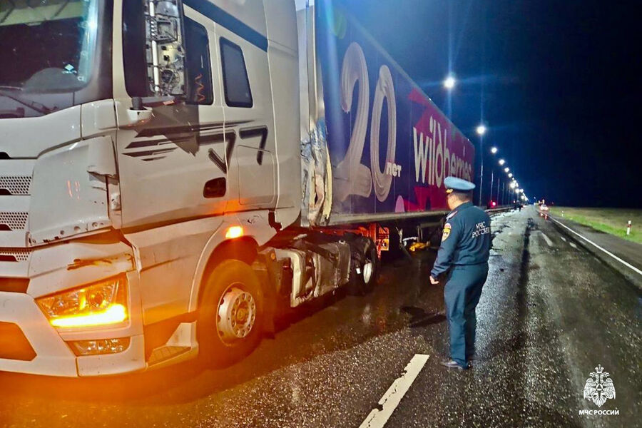 Водитель грузовика успел понять опасность и попытался увернуться, прижавшись к отбойнику. Но избежать столкновения было уже невозможно.