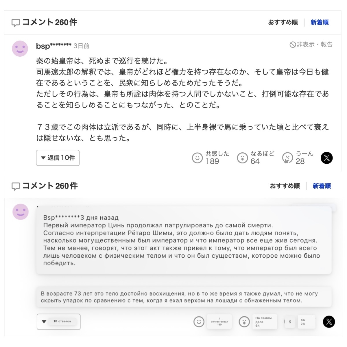 Скриншот комментариев с японского новостного портала