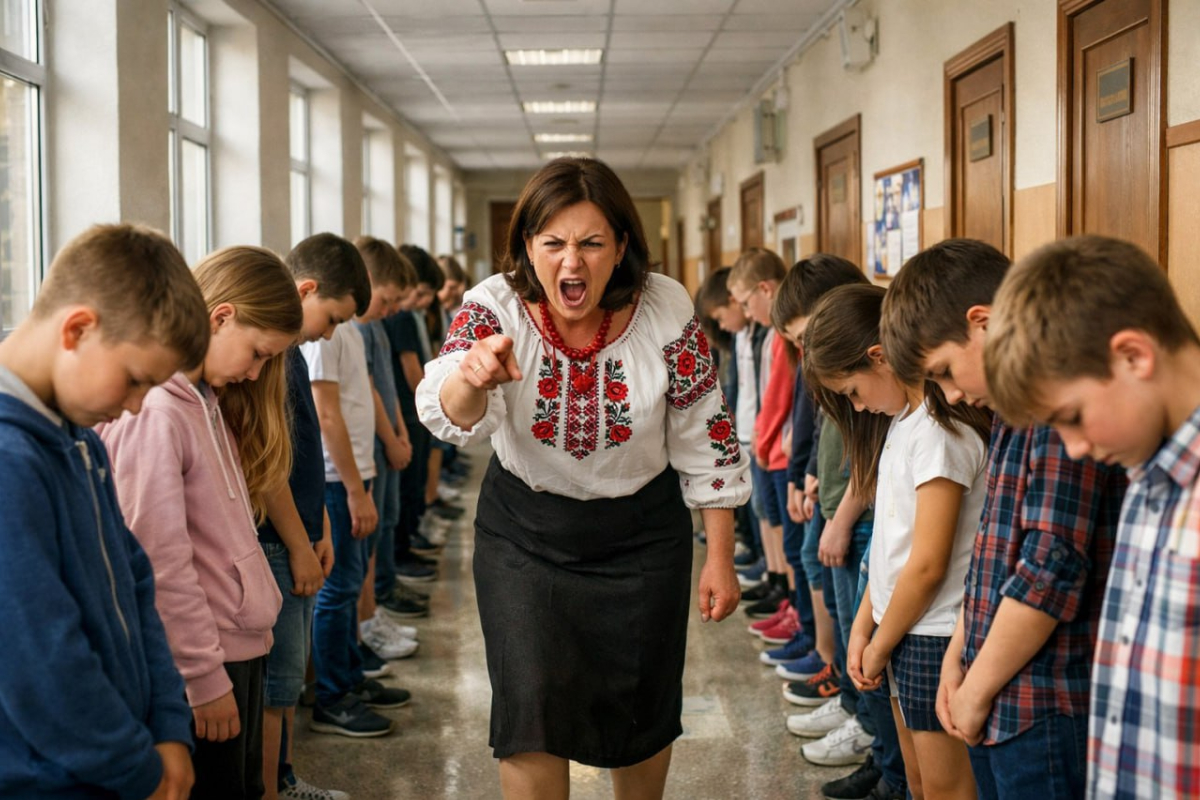 «Всем заткнуться и скорбеть! Минута молчания, вы что не понимаете?» - на украинской «мове» весьма резко молвила женщина-педагог.