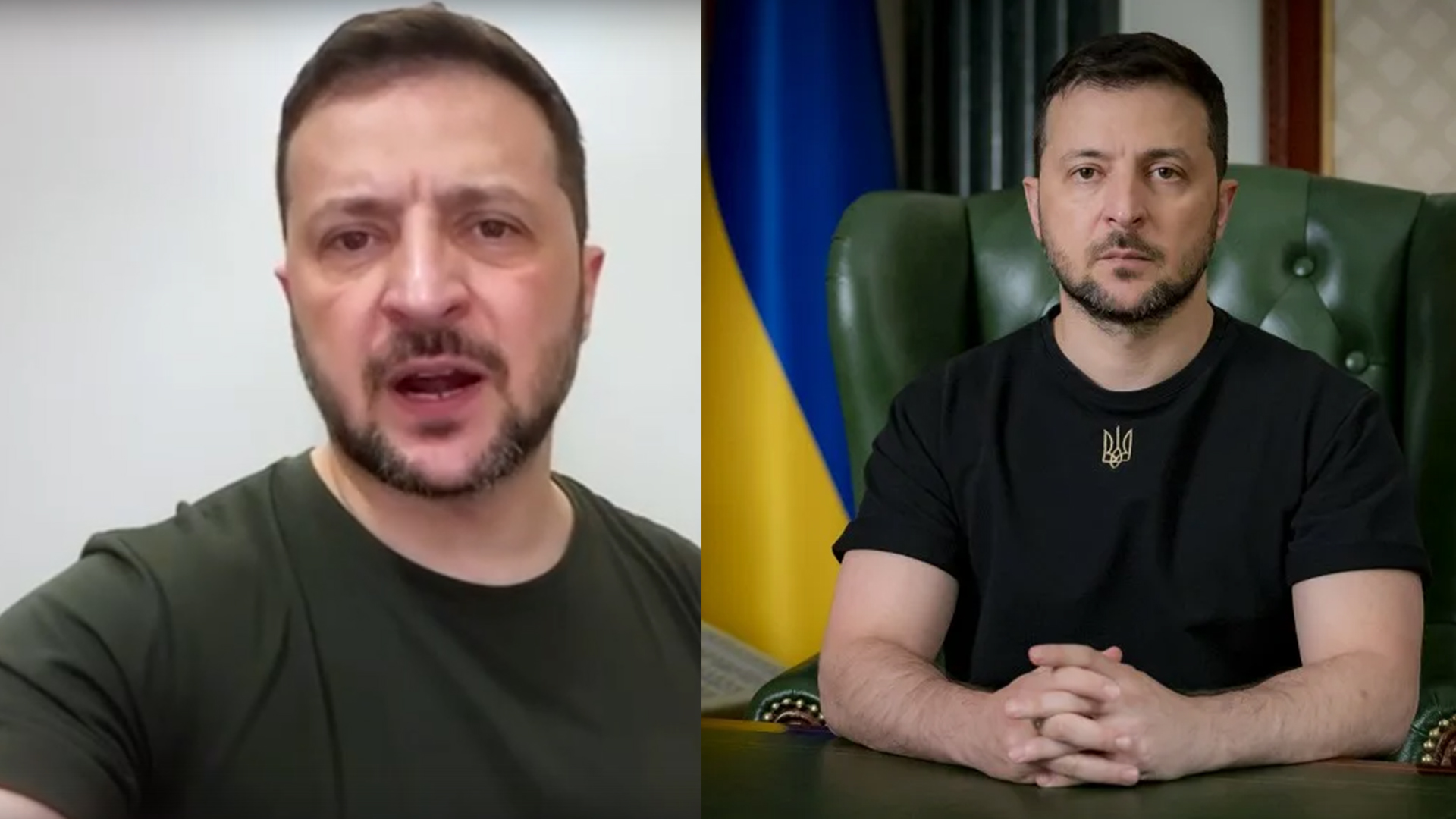 Владимир Зеленский (одно из последних видео-обращений, 2025 год) - слева. Справа - он же до начала СВО