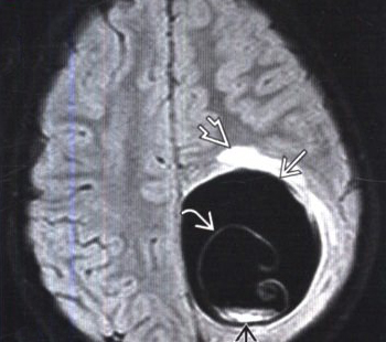 Вот так, например, выглядит на МРТ киста с личинкой в головном мозге