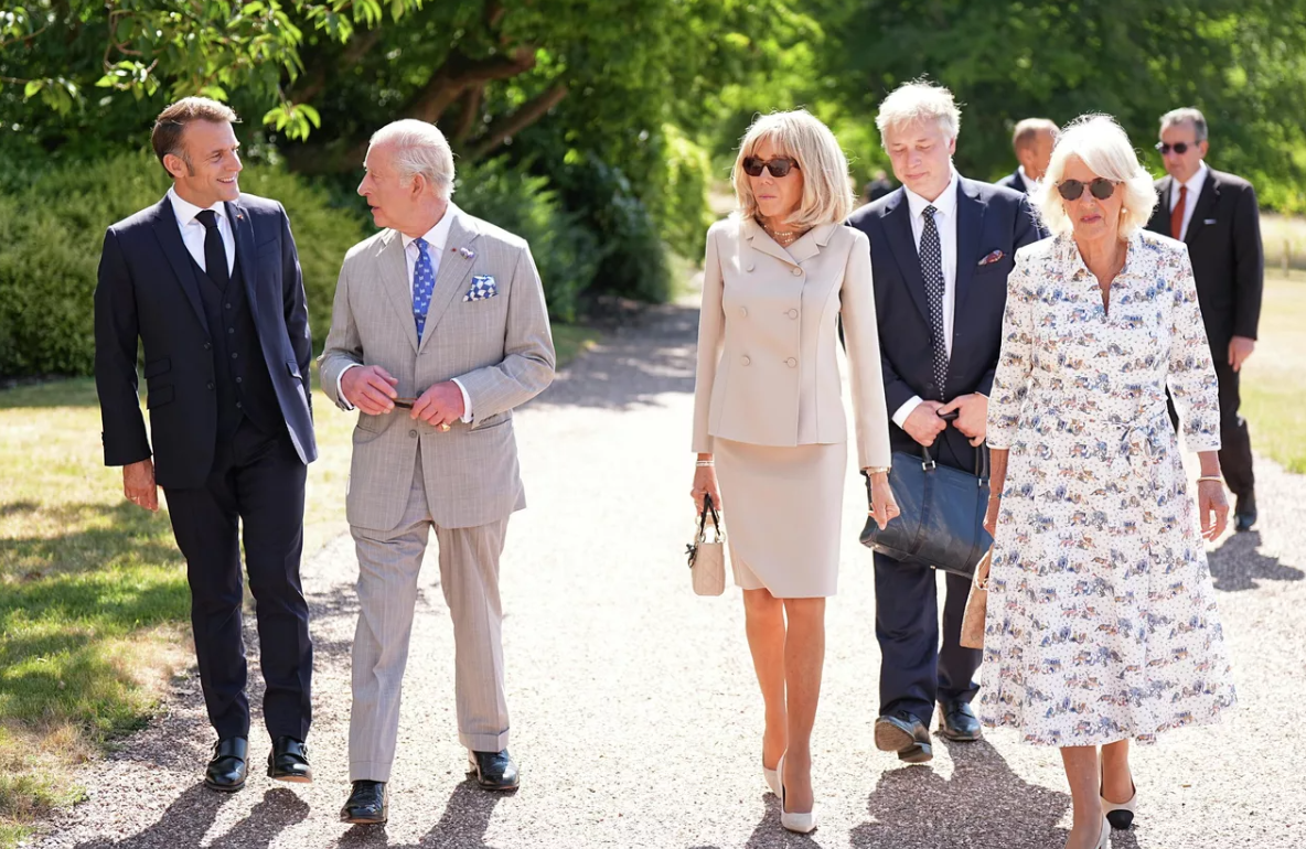 На фото слева направо: Эммануэль Макрон, король Великобритании Карл III, Брижит Макрон, королева Великобритании Камилла