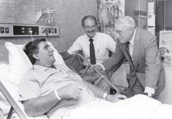 В 1988 году всех их сфотографировали в больнице. Рэндалл Чемпион перенес операцию по шунтированию сердца, а коллега и фотограф пришли его навестить.