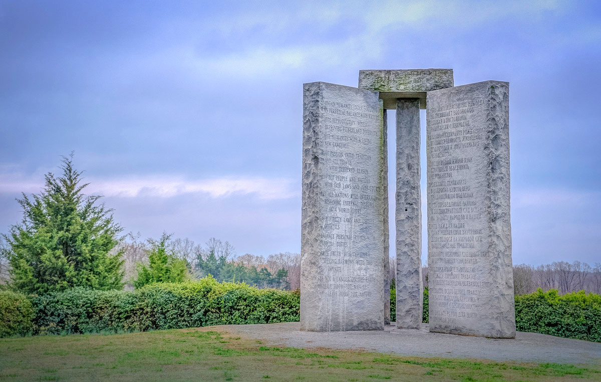 Представьте себе: в штате Джорджия (США) однажды стояли свои «Скрижали». В 1980-м году этот «монумент» построили по заказу некоего «Роберта Крисчена» (Крисчен = Christian, «христианин»). Надписи там были на разных языках, включая русский, английский, испанский, суахили и хинди.