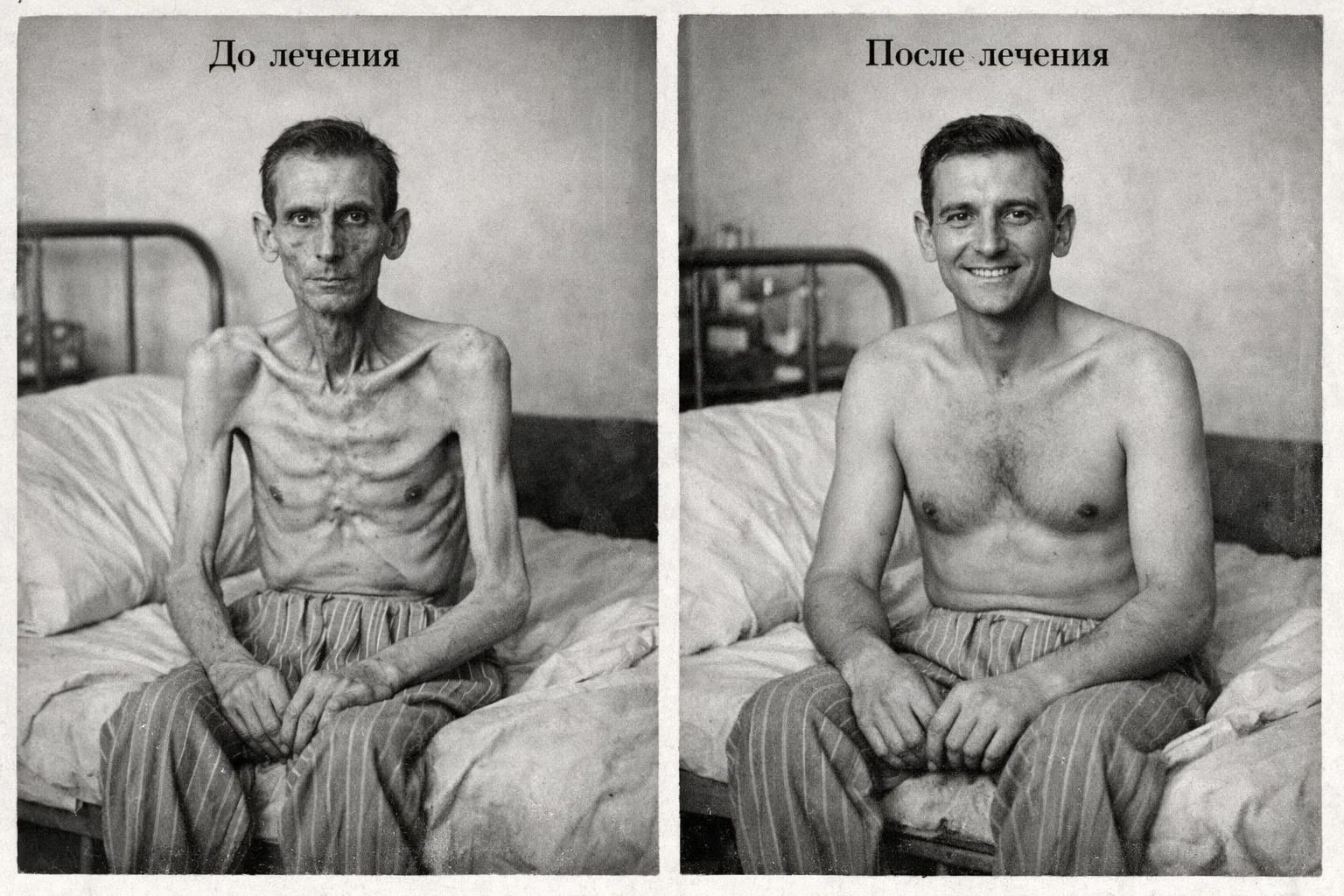 Фотографии «до и после» поражали воображение. На первом снимке — истощённое существо, больше похожее на труп. На втором, через три-четыре месяца — обычный здоровый человек. Трудно поверить, что это один и тот же пациент.