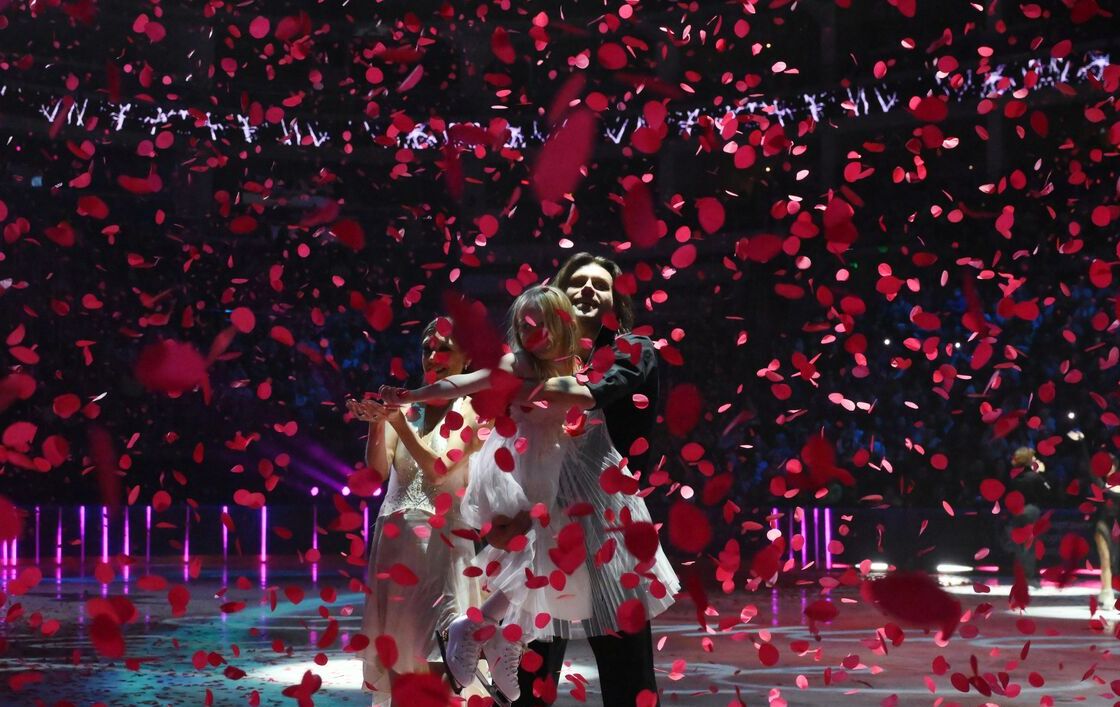 Наоми Ланг, Петр Чернышев и его дочь Мила на ледовом шоу