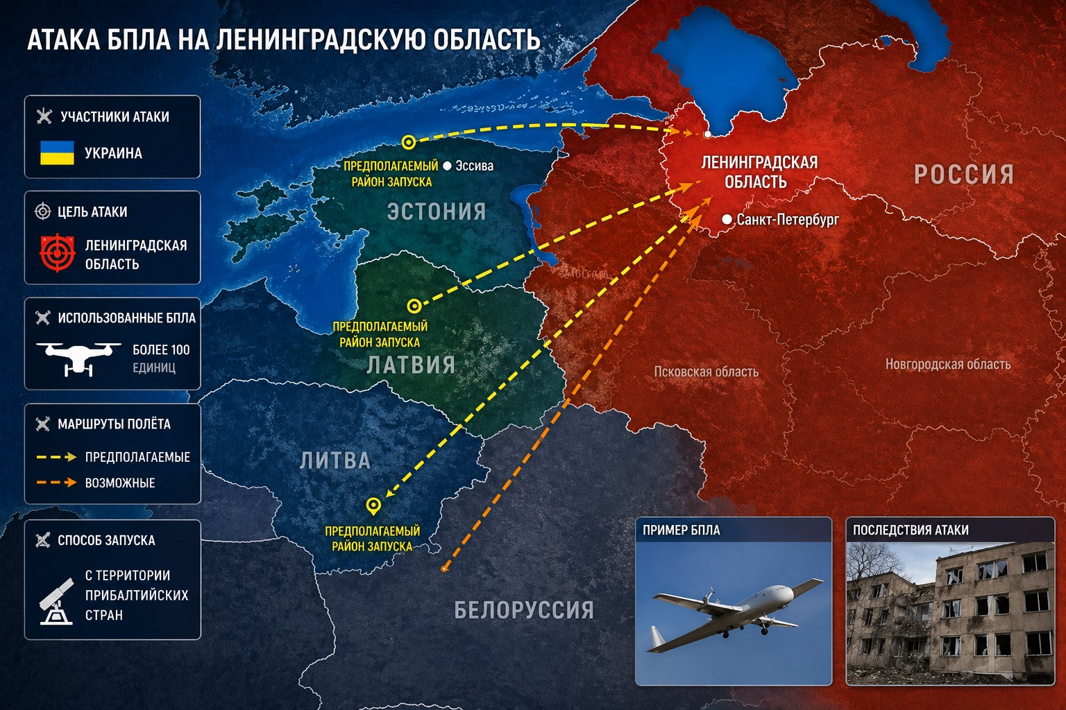 В марте этого года российские системы ПВО зафиксировали беспрецедентную активность в небе над Ленинградской областью. Сотни боевых дронов шли на порт Усть-Луга и другие объекты Северо-Запада. Траектории полета с абсолютной очевидностью указывали на то, что аппараты либо стартуют с территории Литвы, Латвии и Эстонии, либо нагло пересекают их воздушное пространство.