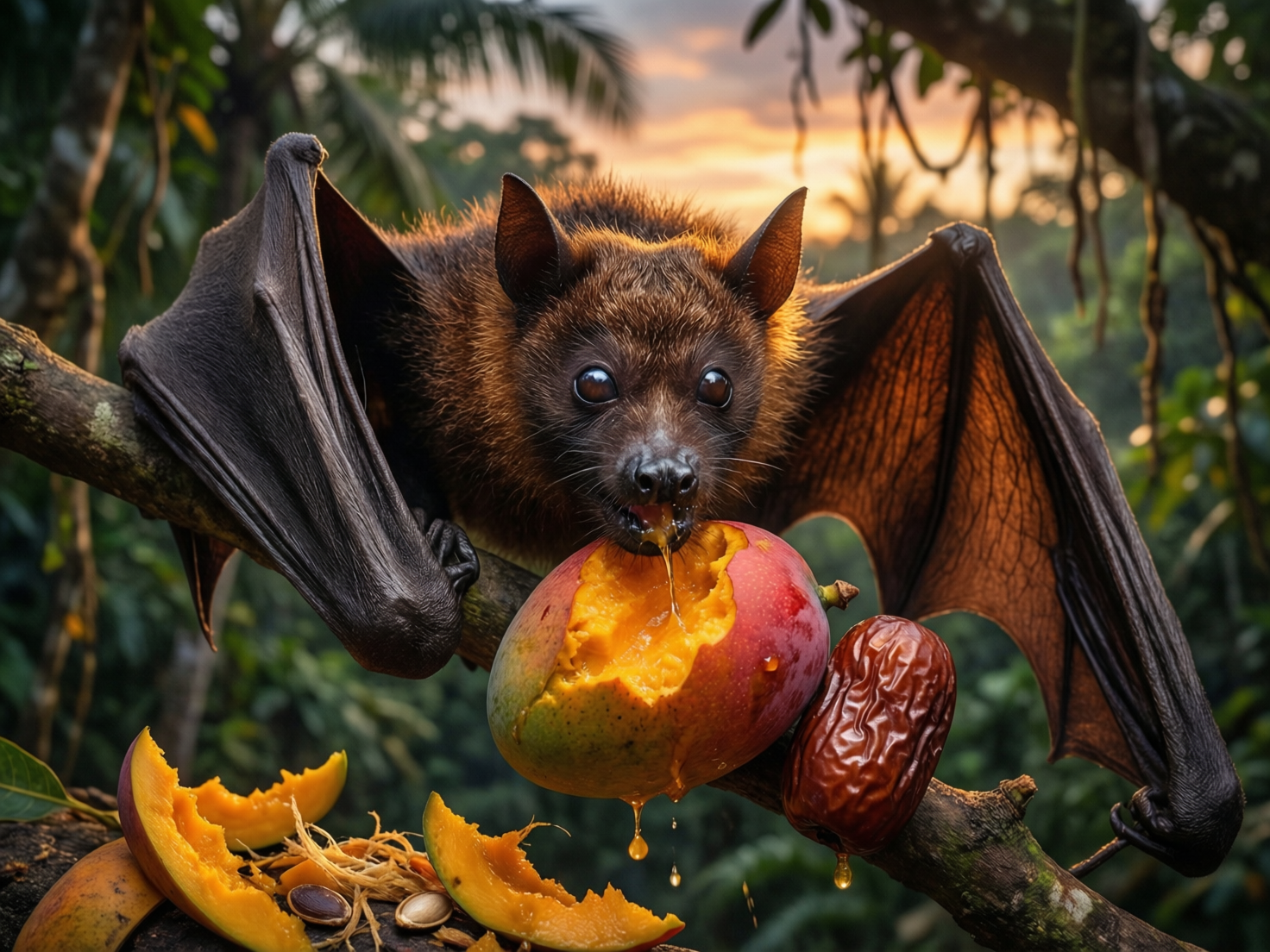 Тропики кишат этими летающими млекопитающими. Они обожают сладкие плоды — манго, финики, личи. Ночью зверьки лакомятся в садах, оставляя на фруктах биологические следы своего пиршества.