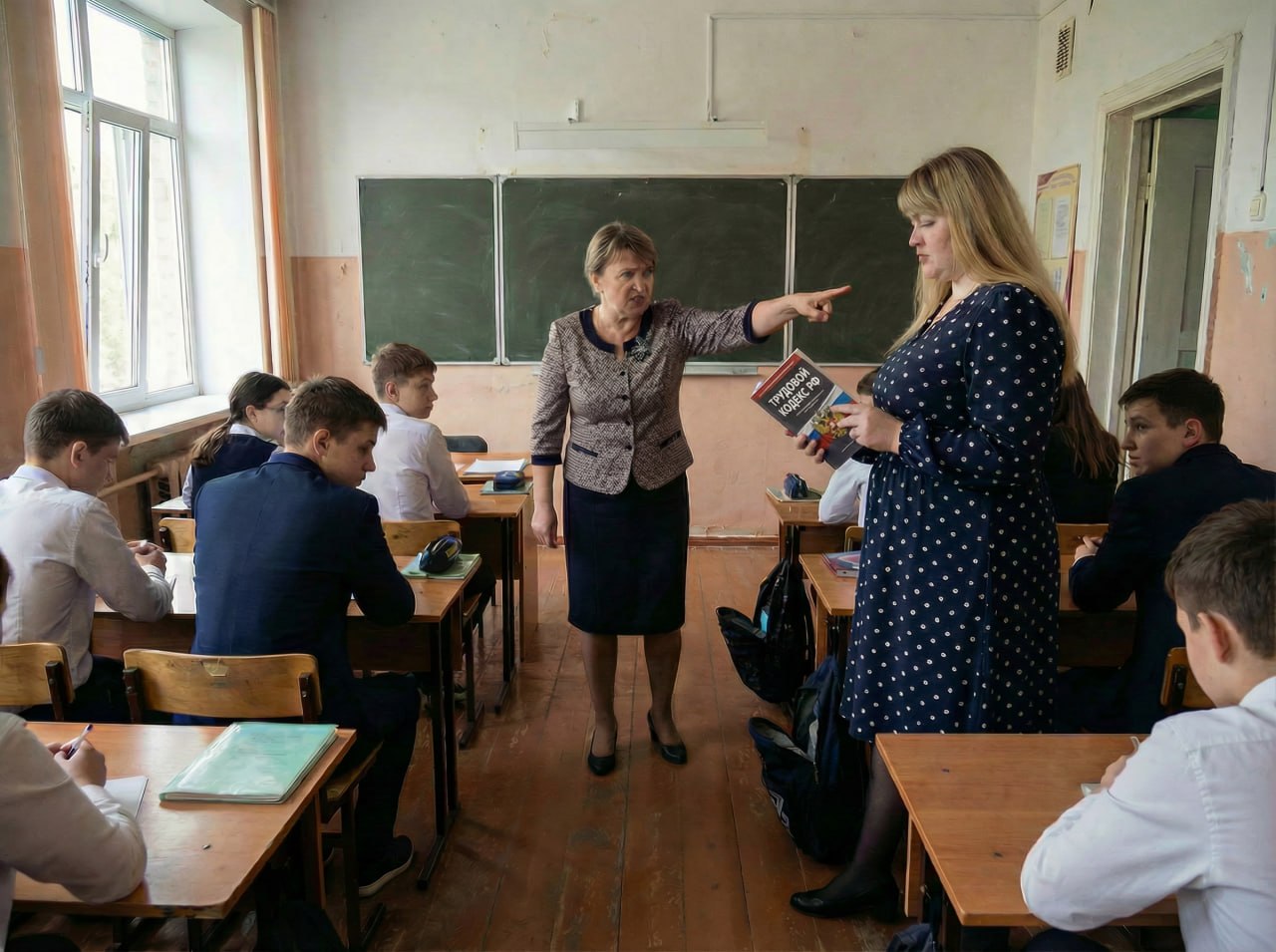 Реакция руководства оказалась... показательной. Завуч не вызвала учительницу на приватный разговор, не стала разбираться в правовых тонкостях. Она высказала всё прямо на глазах у учеников — прилюдно предложила педагогу «поискать другое место». Публично. Без малейшего смущения.
