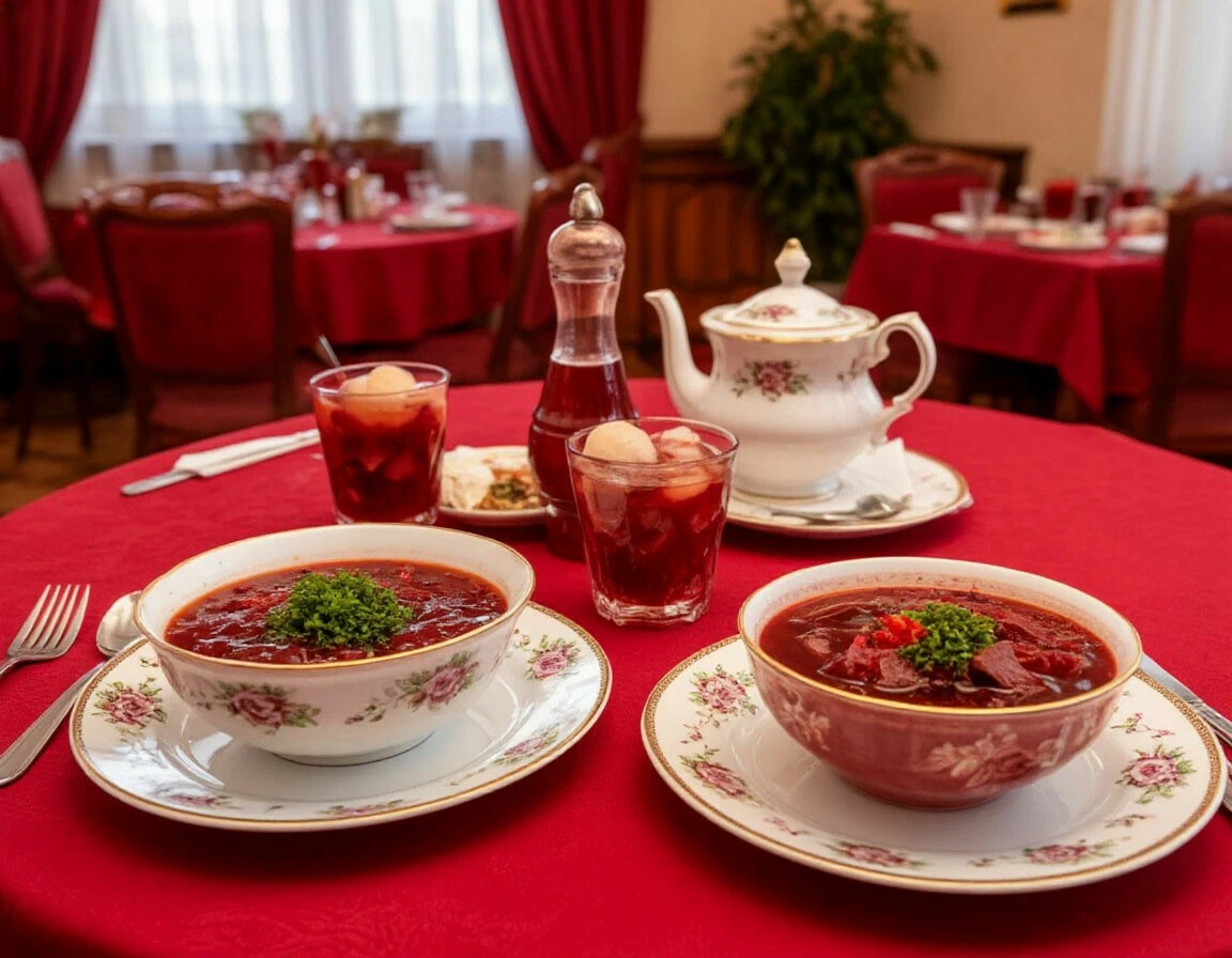Туристы начинают с простого: заходят в советскую столовую. Горячий борщ с говядиной, пельмени с паром, компот из сухофруктов — и сразу возникает сравнение: