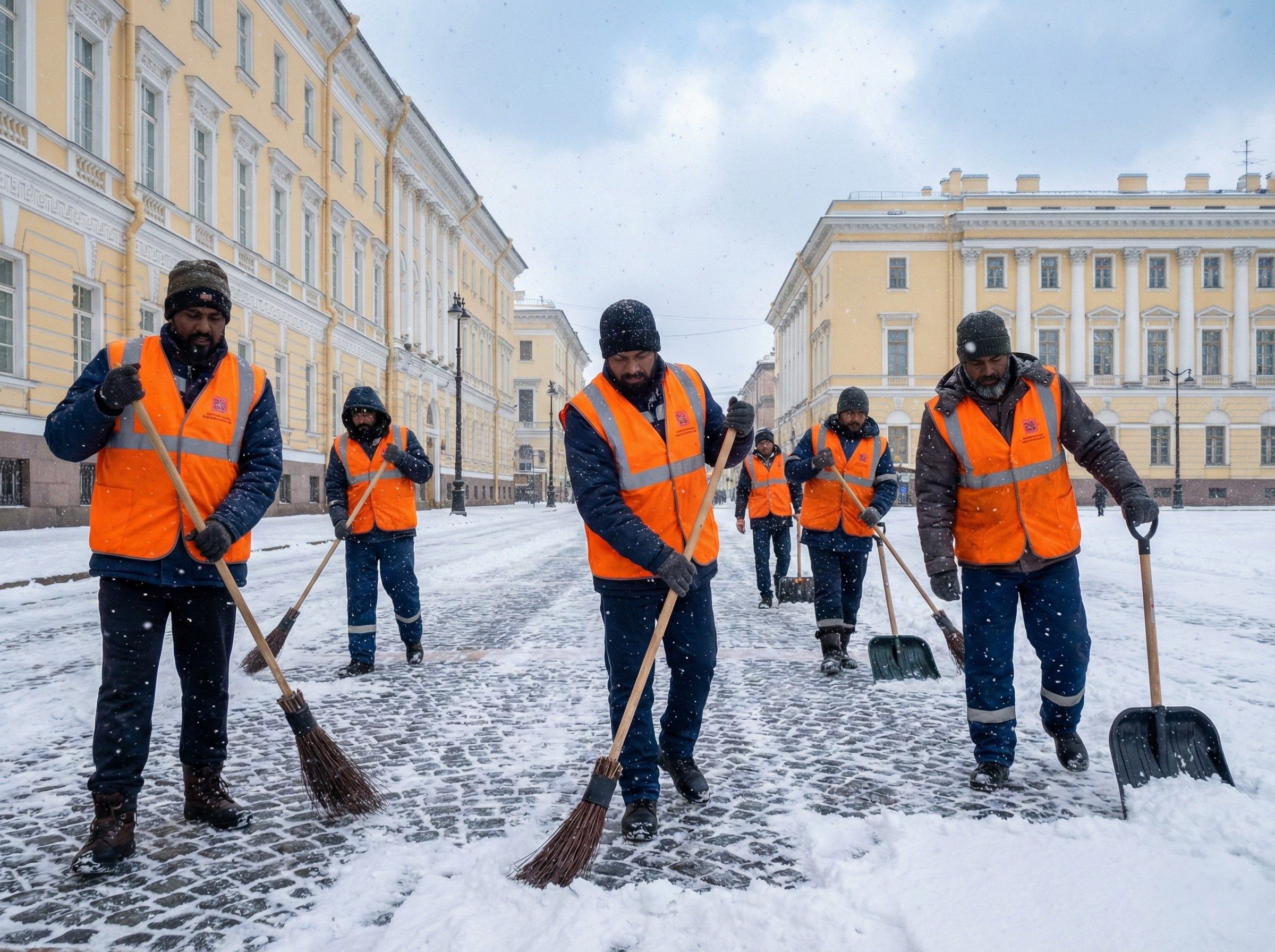 Снег в Санкт-Петербурге этой зимой убирают с экзотическим колоритом. Новость о том, что на улицы Северной столицы выходят женщины из Индии, вызвала эффект разорвавшейся бомбы, но настоящий взрыв произошел, когда в СМИ просочились цифры их предполагаемого заработка. Информация о 100 тысячах рублей, якобы обещанных иностранным специалистам за махание метлой, мгновенно стала городской легендой, обросла слухами и спровоцировала жесткую дискуссию в обществе.