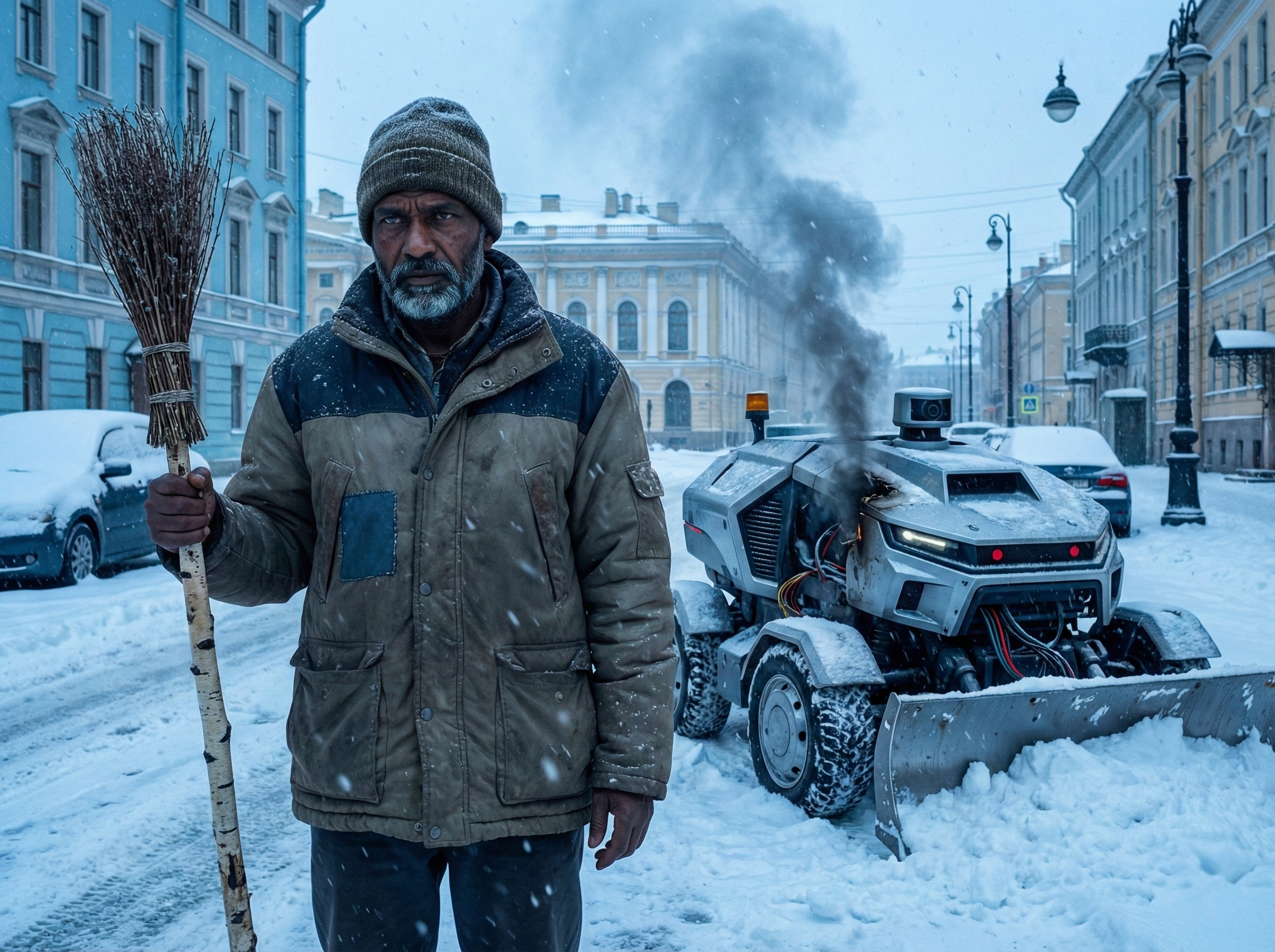 В итоге формируется замкнутый круг. Сложная техника выбывает из строя, для выполнения того же объема работ требуется еще больше людей с метлами, что вынуждает завозить новые партии мигрантов. Вместо одного квалифицированного специалиста с машиной город получает бригаду разнорабочих.