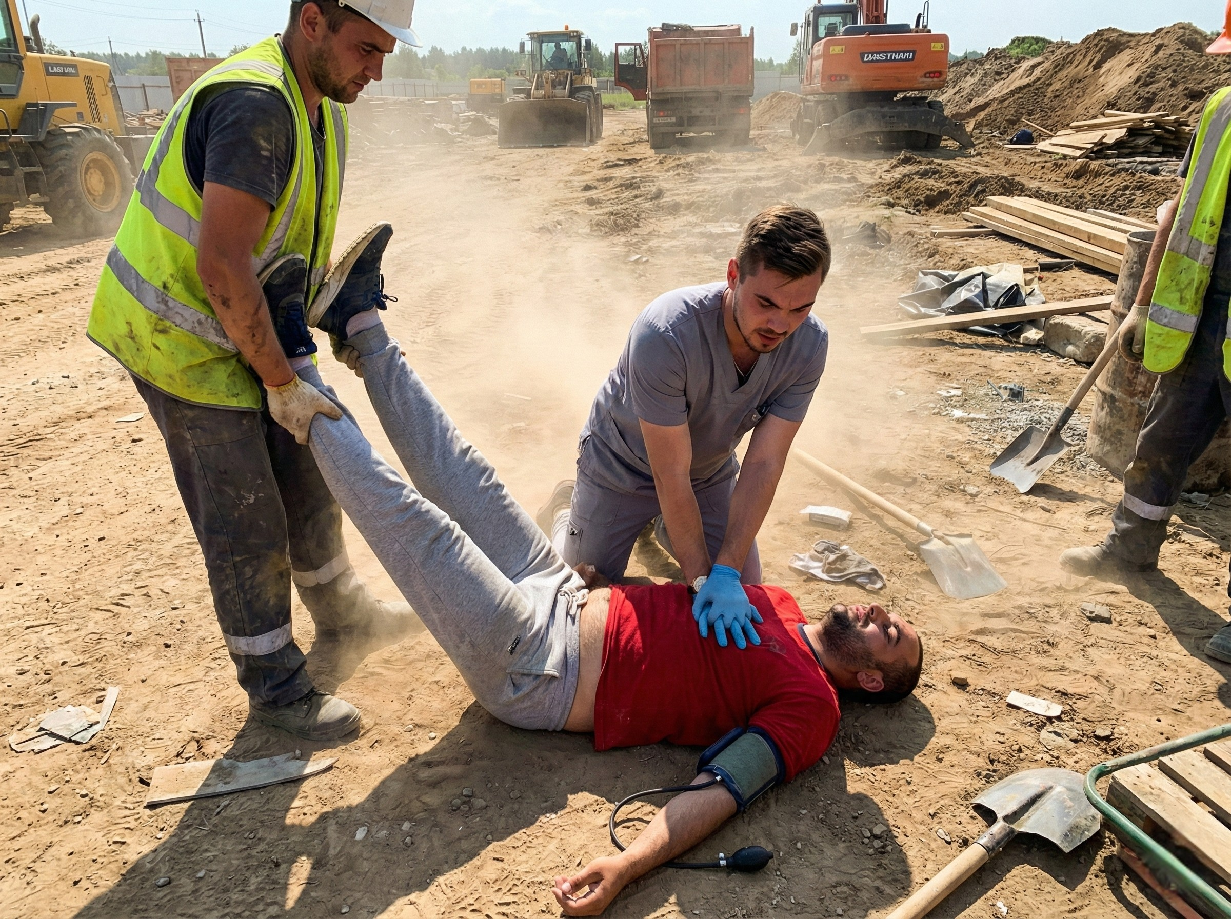 Все случилось на стройплощадке в частном секторе. Жара плавила асфальт, когда рабочему Умету стало плохо. Спасение началось со звонка: Станиславу Кравцу набрал его дедушка-строитель, работавший на объекте. Голос в трубке был тревожным.