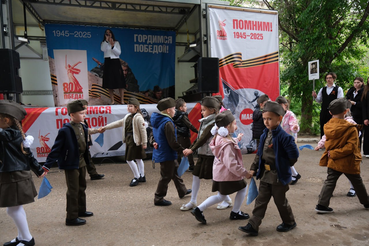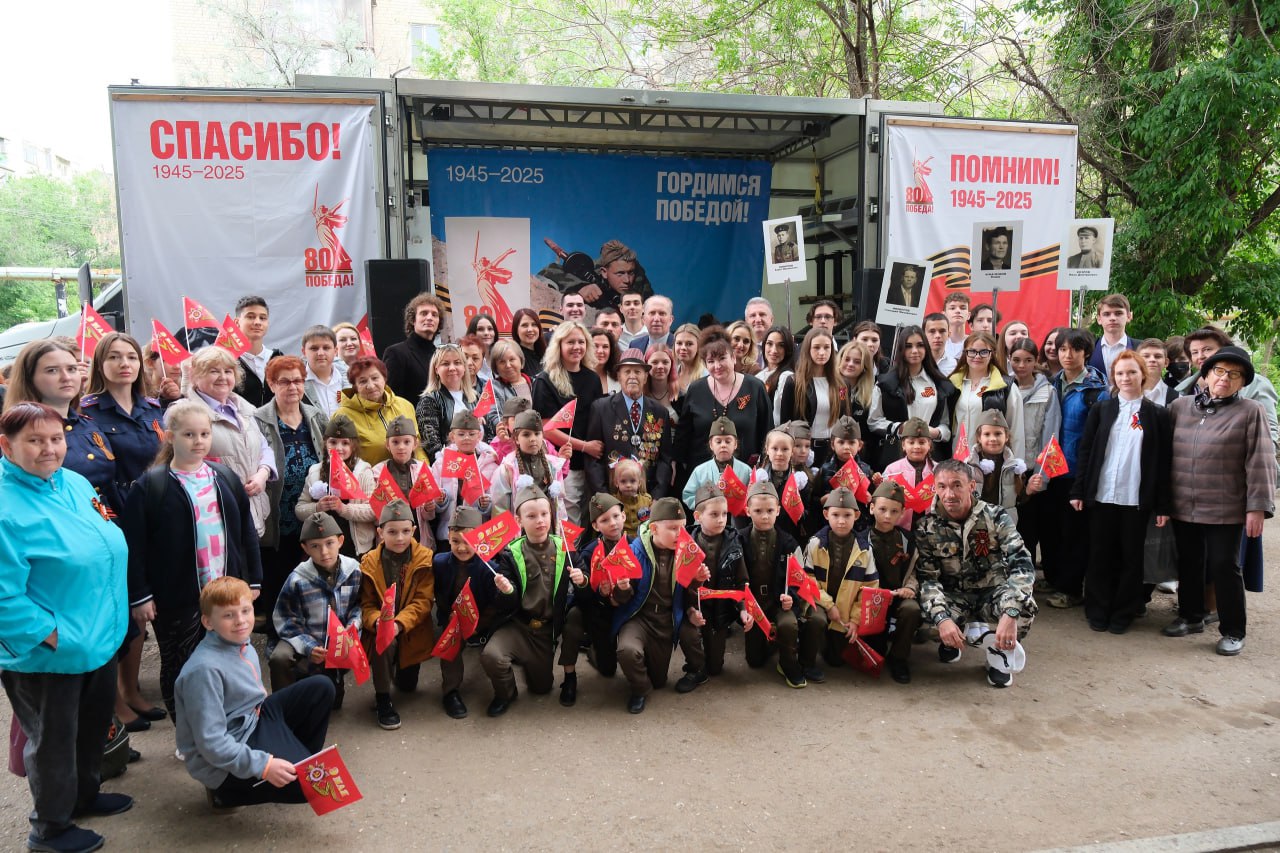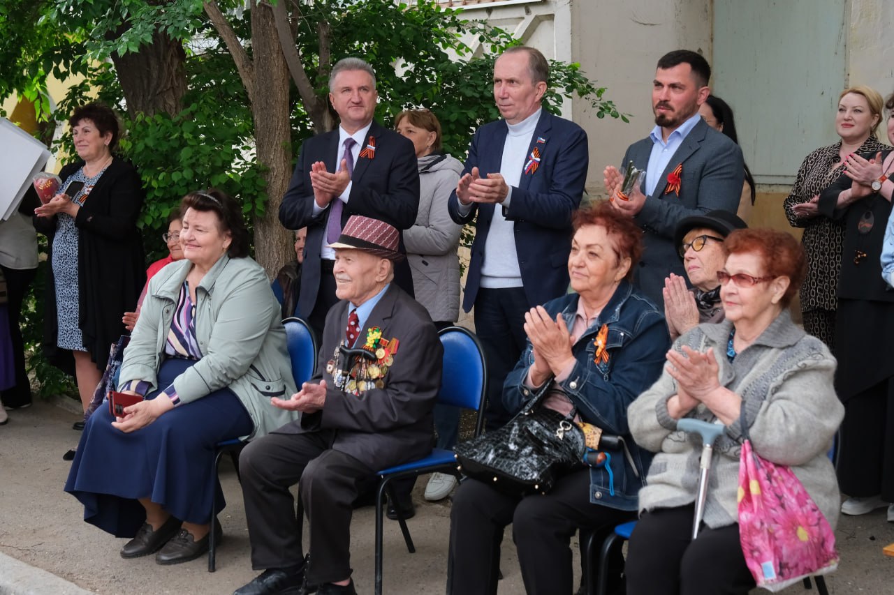Дума Астраханской областиВо дворе ветерана состоялся концерт, артисты в том числе исполнили песню «День Победы». Степану Ивановичу вручили подарки и награду — знак «Почетный ветеран города Астрахани».